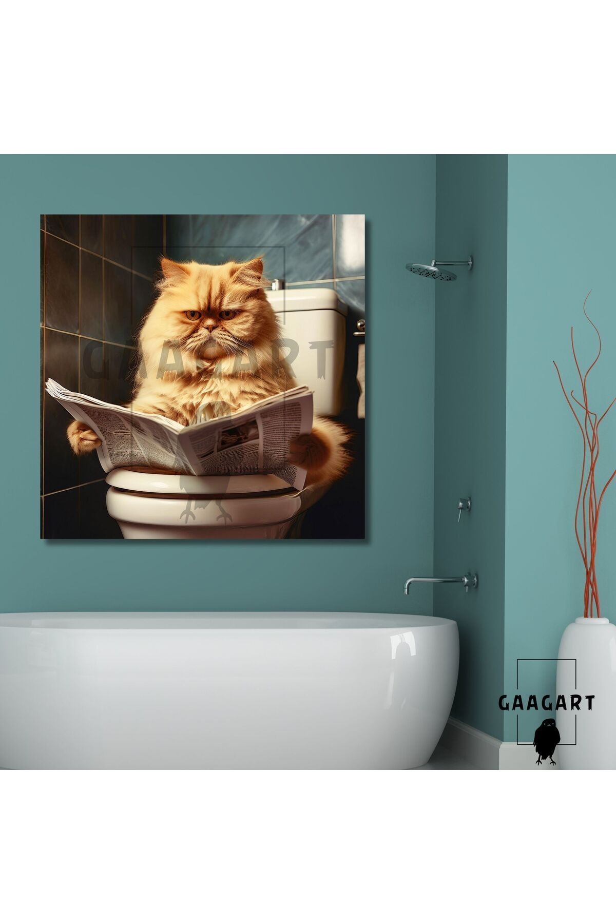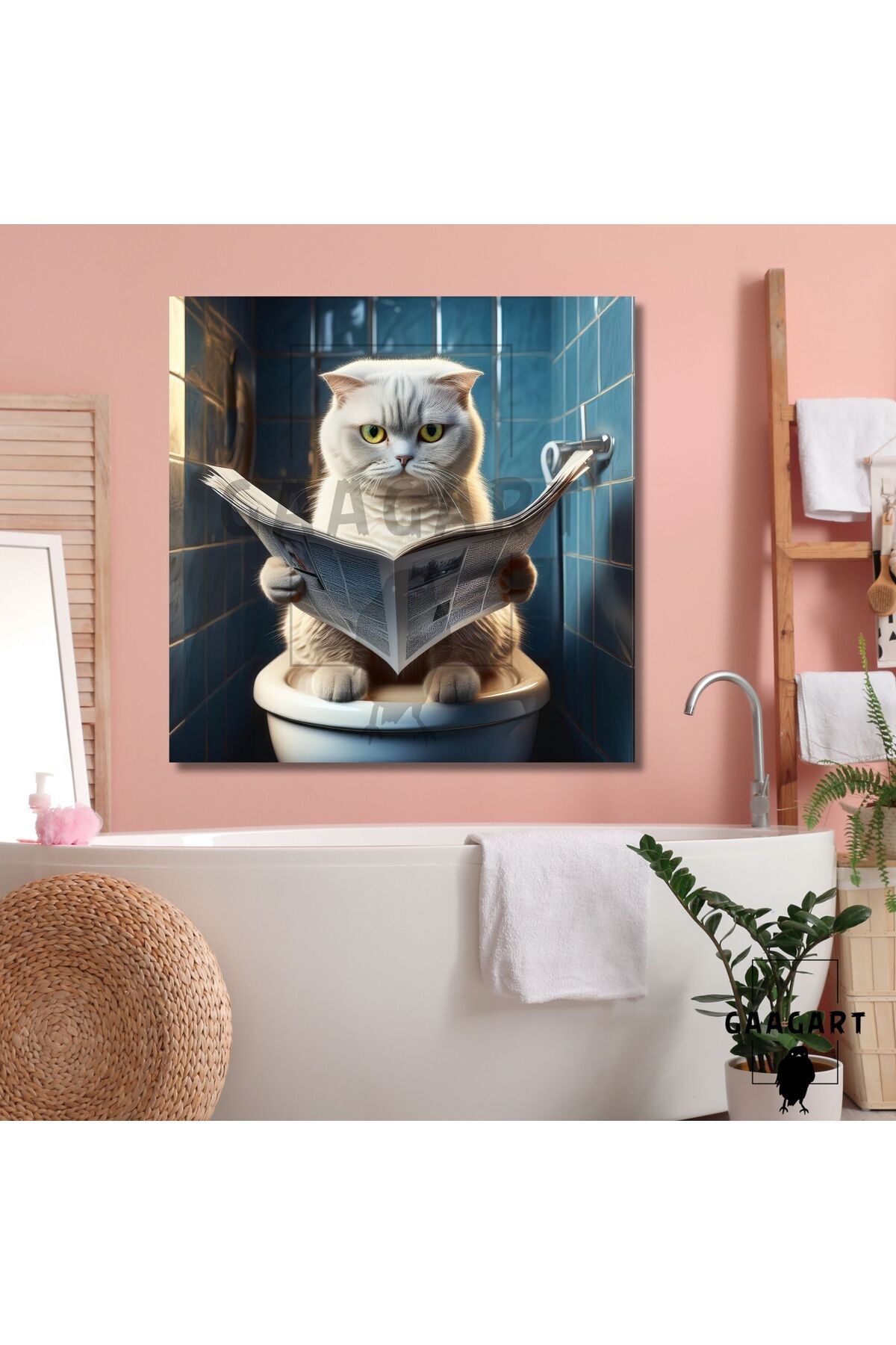 Tekli Kare Kanvas Banyo Tablosu Gazete Okuyan Scottish Kedi Tekli Kare Kanvas Banyo Tablosu Gazete Okuyan Scottish Kedi GAAGART-TKK-0086 50 x 50