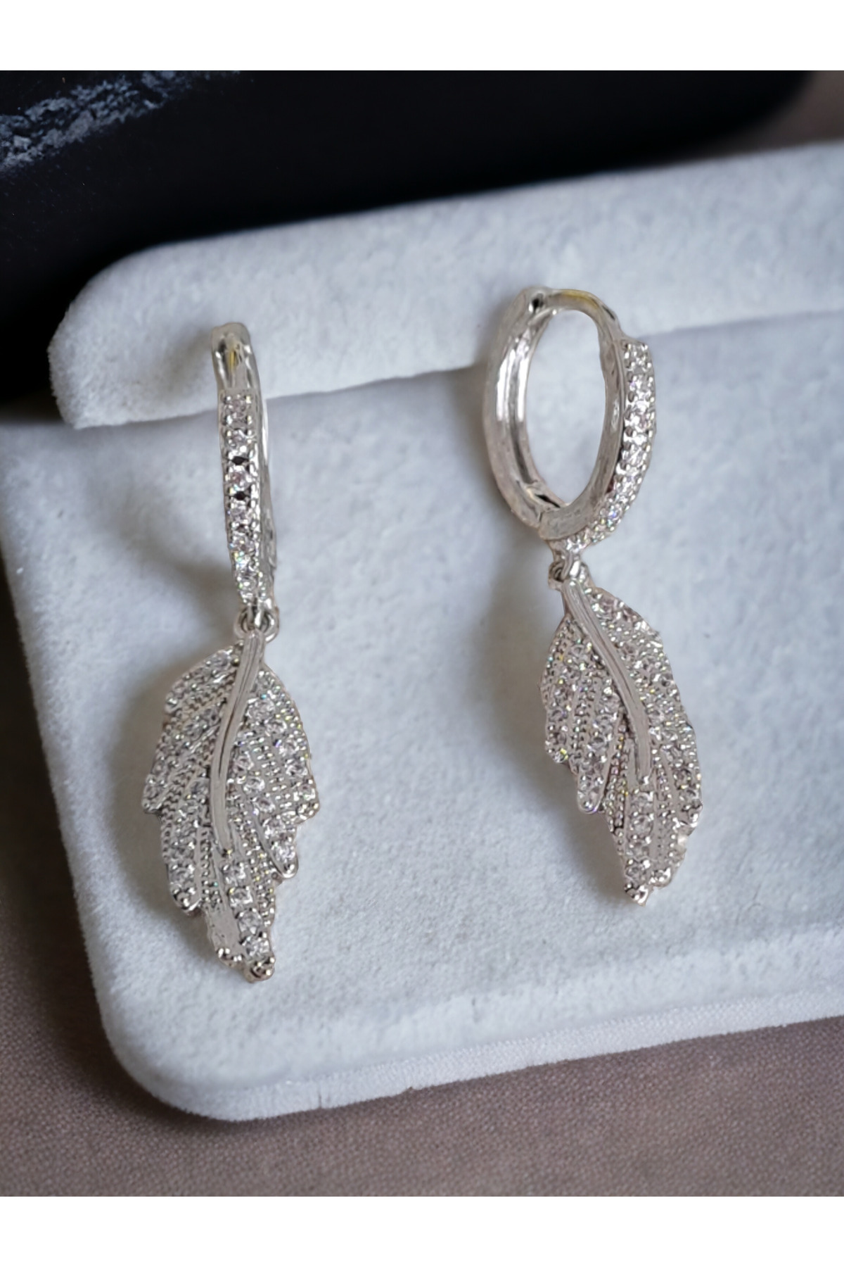 Zirkon Taşlı Sallantılı Yaprak Küpe Zirkon Taşlı Sallantılı Yaprak Küpe 337 3 cm