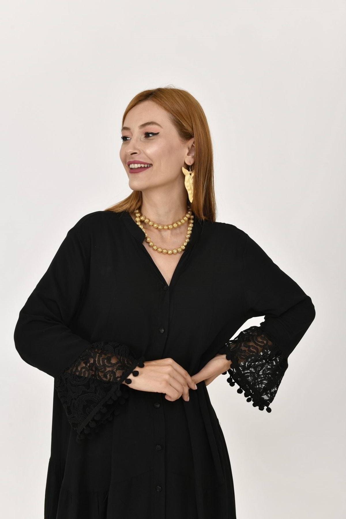 Kadın İtalyan Yarım Kol Kat Kat Uzun Siyah Ipek Elbise Kadın İtalyan Yarım Kol Kat Kat Uzun Siyah Ipek Elbise Hzn972 Standart