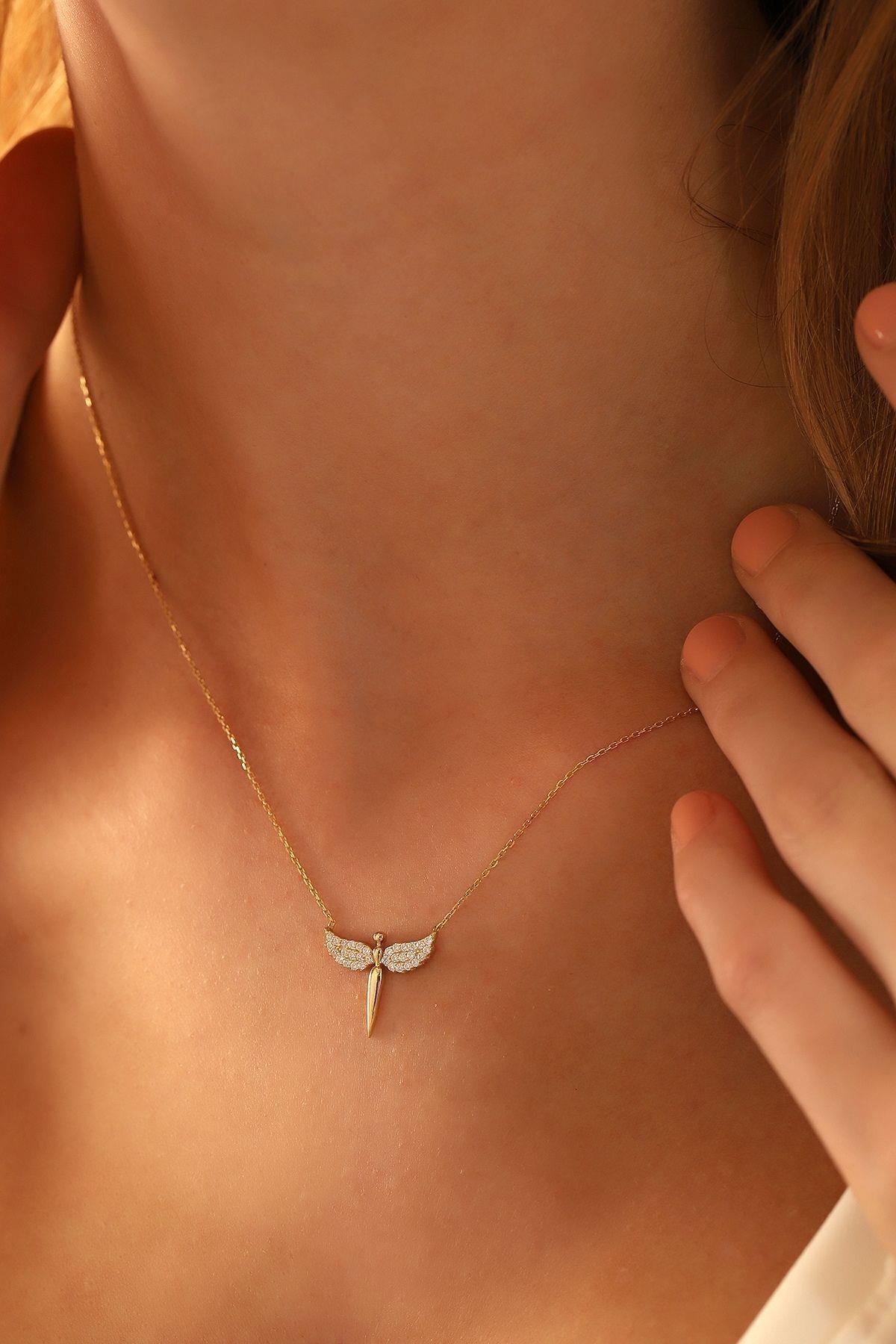 Taşlı Mikail Meleği 14 Ayar Altın Kolye Taşlı Mikail Meleği 14 Ayar Altın Kolye ANGN898 43 cm