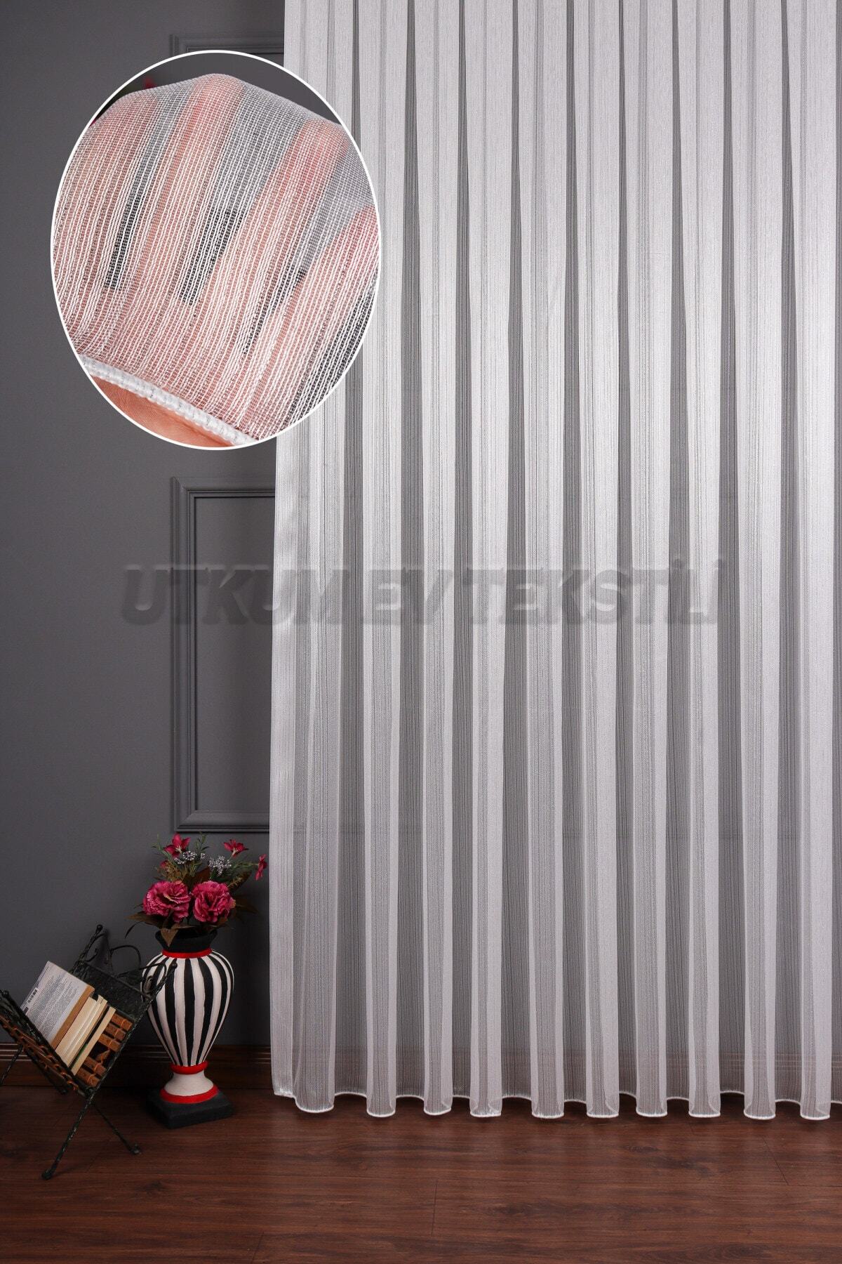 Rüyaper Gümüş Simli Çizgili Tül Perde 1/2,5 Pile Rüyaper Gümüş Simli Çizgili Tül Perde 1/2,5 Pile Gümüşsimli 400 x 260