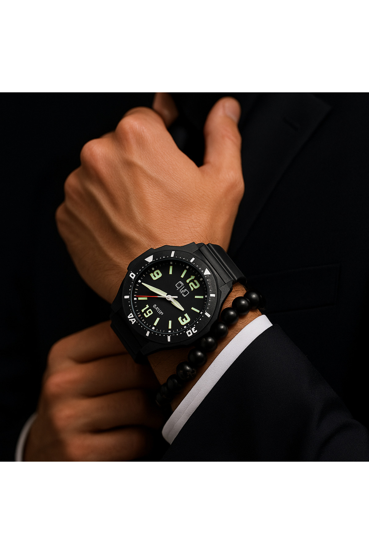 Erkek Su Geçirmez Plastik Kordon Kol Saati Erkek Su Geçirmez Plastik Kordon Kol Saati QED24001 تک سایز