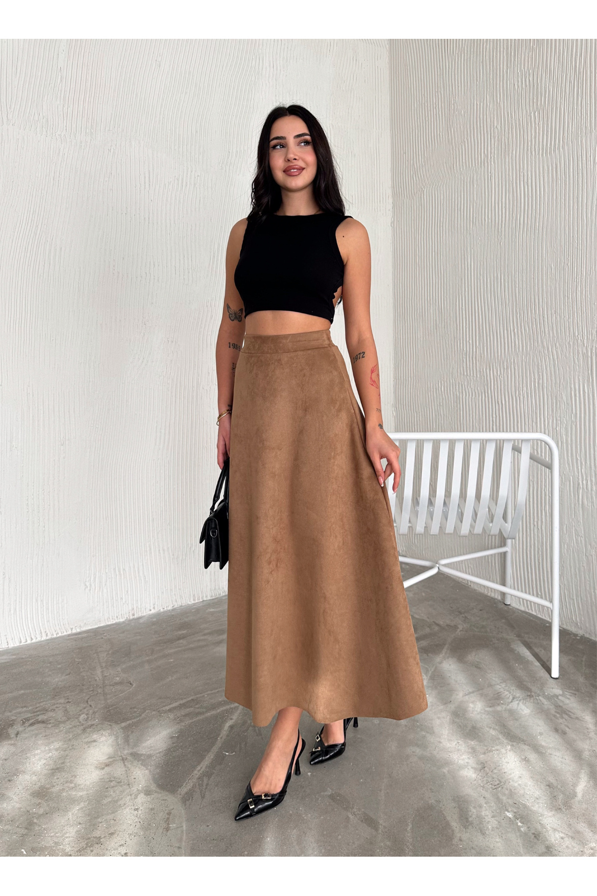 Düz Mevlana Süet Etek Kadın Düz Mevlana Süet Etek Kadın blackramtekleri5 XL