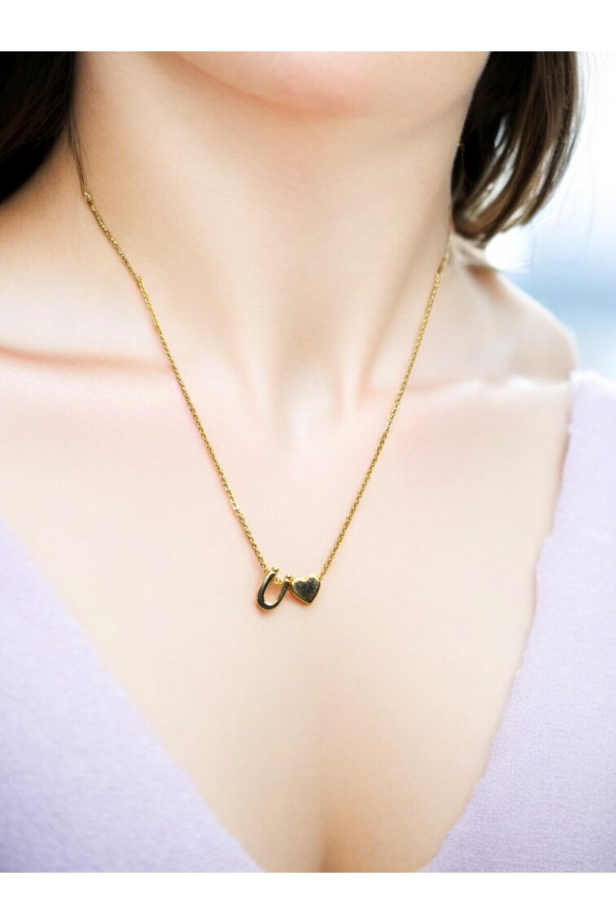 Çelik Zincir Altın Kapama Harf Ve Zirkon Kalp Kolye U Harfi Çelik Zincir Altın Kapama Harf Ve Zirkon Kalp Kolye U Harfi O51 45 cm