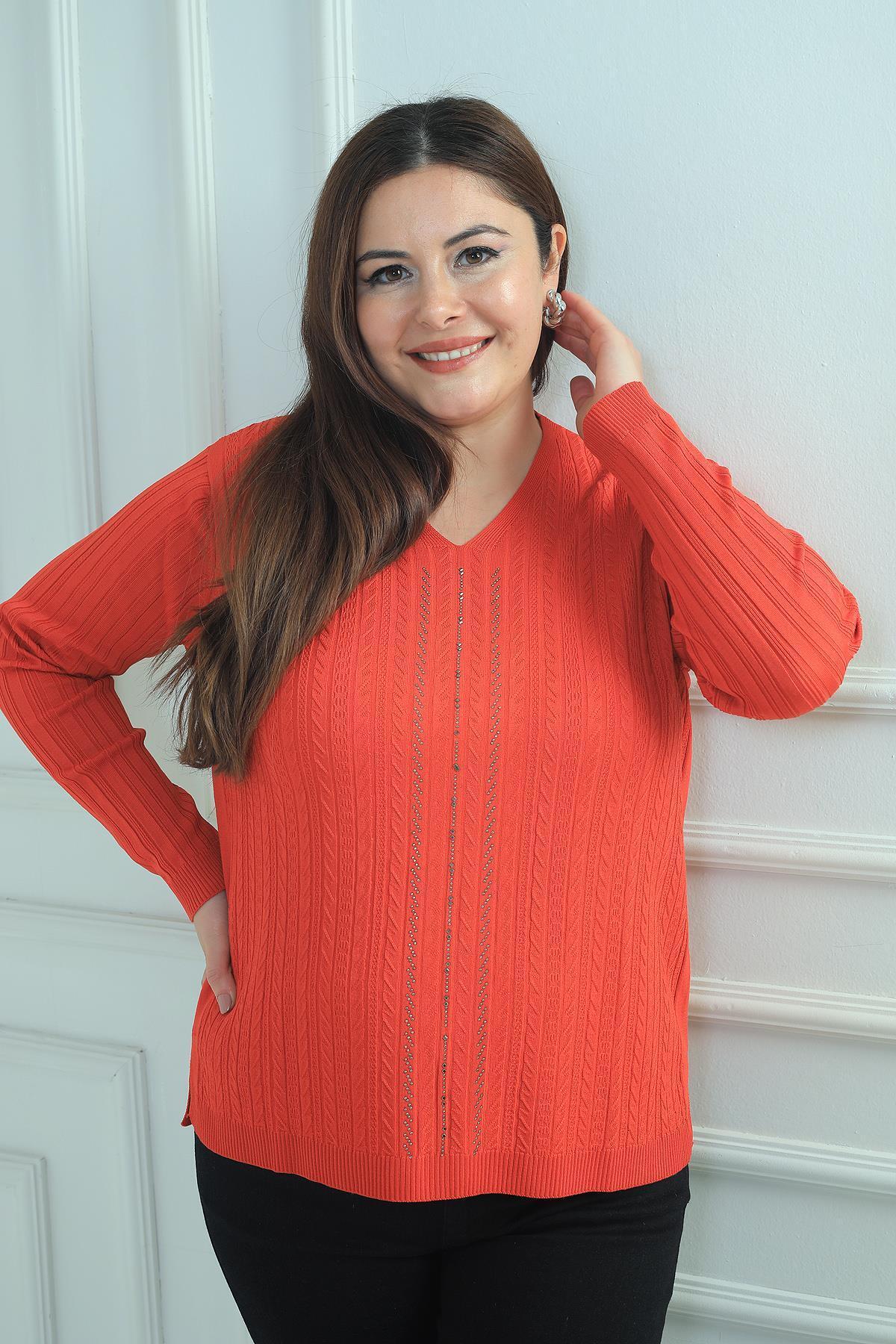 Kolye Detaylı Büyük Beden Bluz Kolye Detaylı Büyük Beden Bluz 4763 58