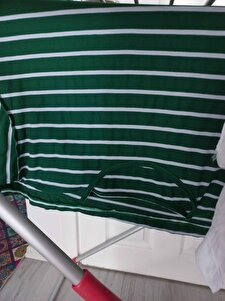 Kadın Çimen Yeşili Çizgili Salaş Tişört TSH-19000283 Kadın Çimen Yeşili Çizgili Salaş Tişört TSH-19000283 L