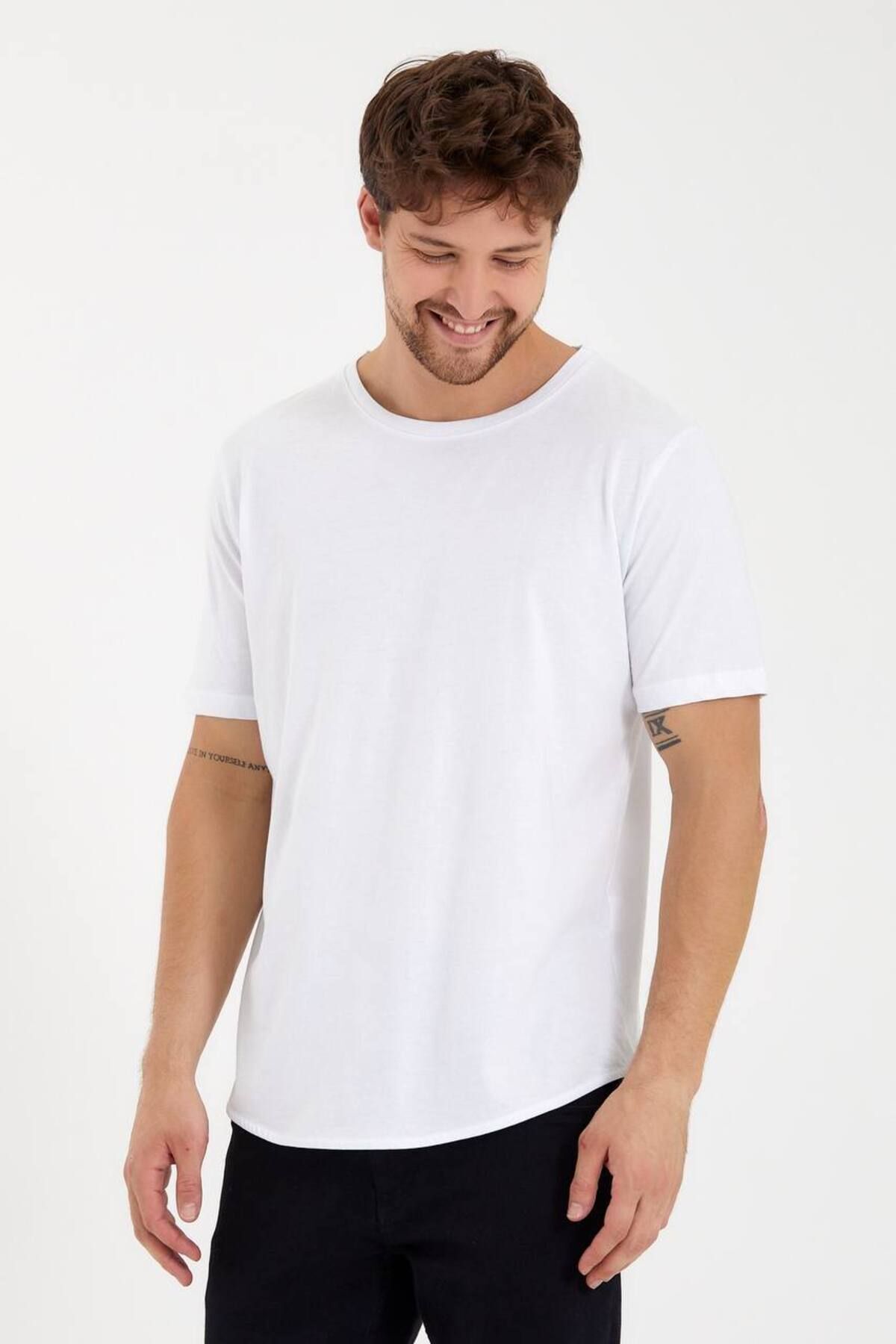 2'li Erkek Beyaz Kolları Katlı Oval Kesim Cepsiz Bisiklet Yaka T-shirt 2'li Erkek Beyaz Kolları Katlı Oval Kesim Cepsiz Bisiklet Yaka T-shirt ADG306-0000005-2Li 2XL