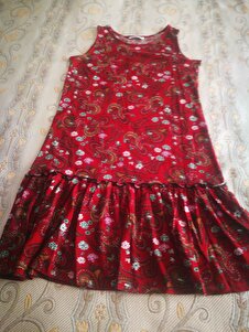 desenli eteği büzgülü askılı pamuklu elbise desenli eteği büzgülü askılı pamuklu elbise 24193 2XL