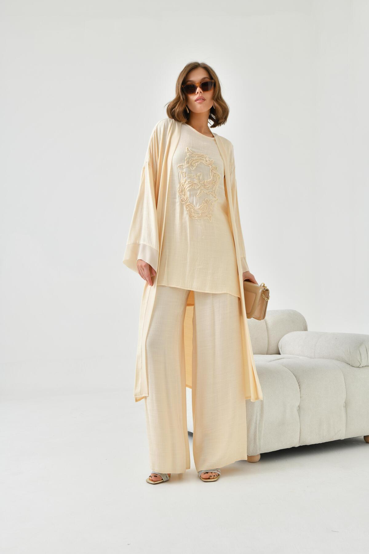 Kadın Nakışlı 3'lü Keten Takım Siyah 30760 Kadın Nakışlı 3'lü Keten Takım Siyah 30760 42