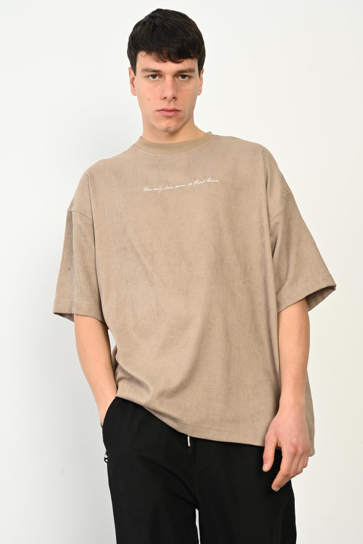 R-5767 Nakış Detaylı Fitilli Kadife Tişört R-5767 Nakış Detaylı Fitilli Kadife Tişört R24YTŞR.E00009 2XL