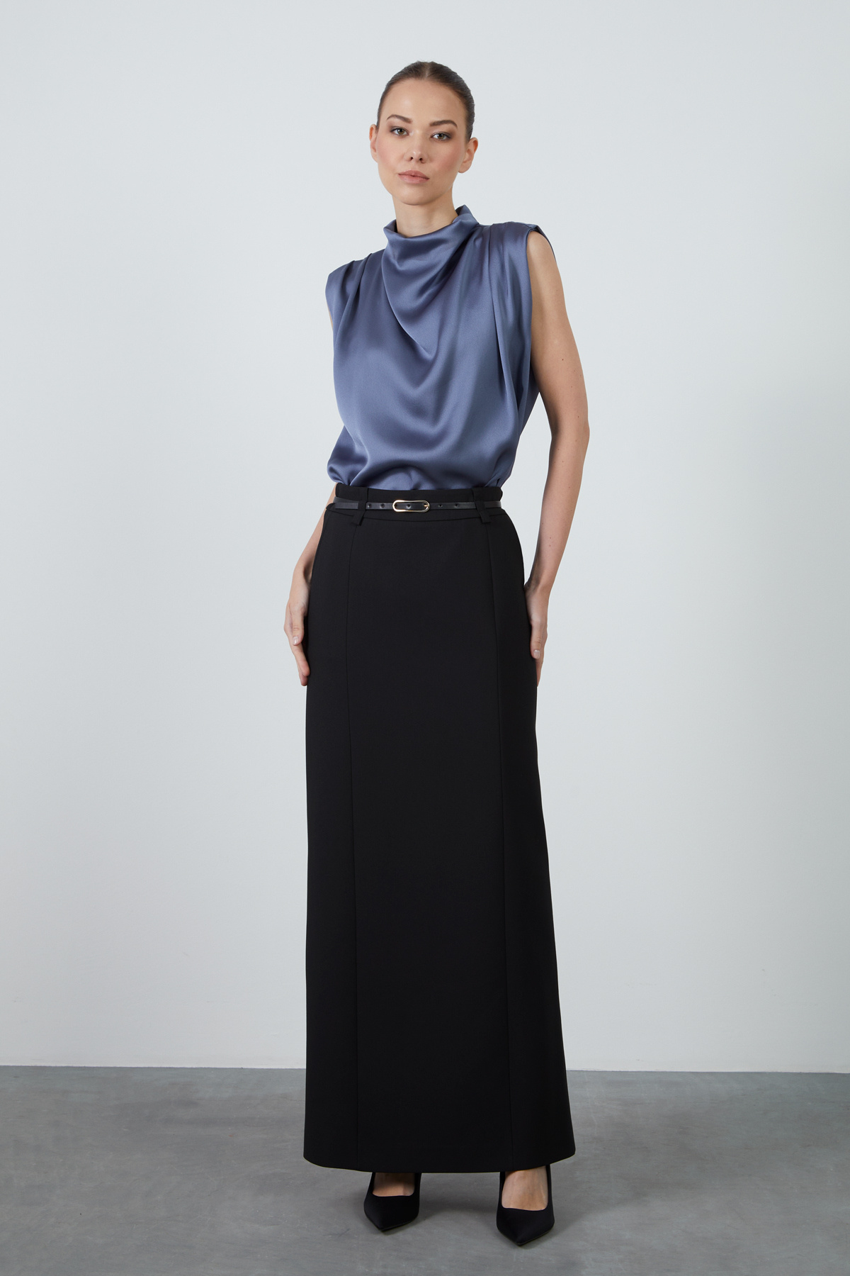 Maxi Boy Arkadan Fermuarlı Yırtmaçlı Indigo Klasik Etek Maxi Boy Arkadan Fermuarlı Yırtmaçlı Indigo Klasik Etek 200001 42