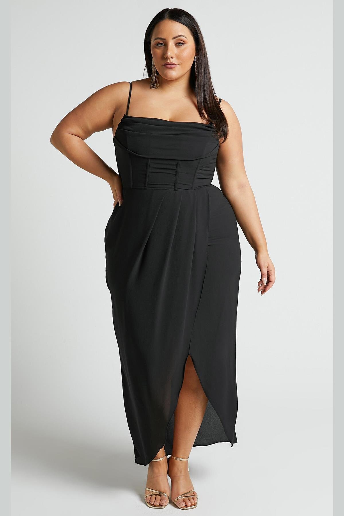 Siyah Degaje Yaka Askılı Elbise MG2022 Siyah Degaje Yaka Askılı Elbise MG2022 2XL