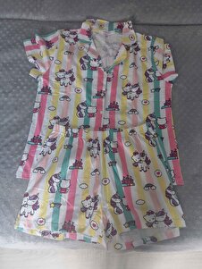 Hello Kitty Lisanslı %100 Pamuk Çok Renkli Düğmeli Şort Pijama Takım Hello Kitty Lisanslı %100 Pamuk Çok Renkli Düğmeli Şort Pijama Takım HK161 14-15 Yaş