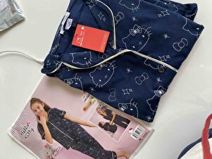Hello Kitty Lisanslı %100 Pamuk Lacivert Çok Renkli Düğmeli Biyeli Pijama Takım Hello Kitty Lisanslı %100 Pamuk Lacivert Çok Renkli Düğmeli Biyeli Pijama Takım HK060 14-15 Yaş