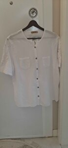 Beyaz Patlı Yaka Dantelli Kol Düğmeli Çift Cepli Yırtmaçlı Yıkamalı Casual Dokuma Bluz Beyaz Patlı Yaka Dantelli Kol Düğmeli Çift Cepli Yırtmaçlı Yıkamalı Casual Dokuma Bluz M10010200BL92266 2XL