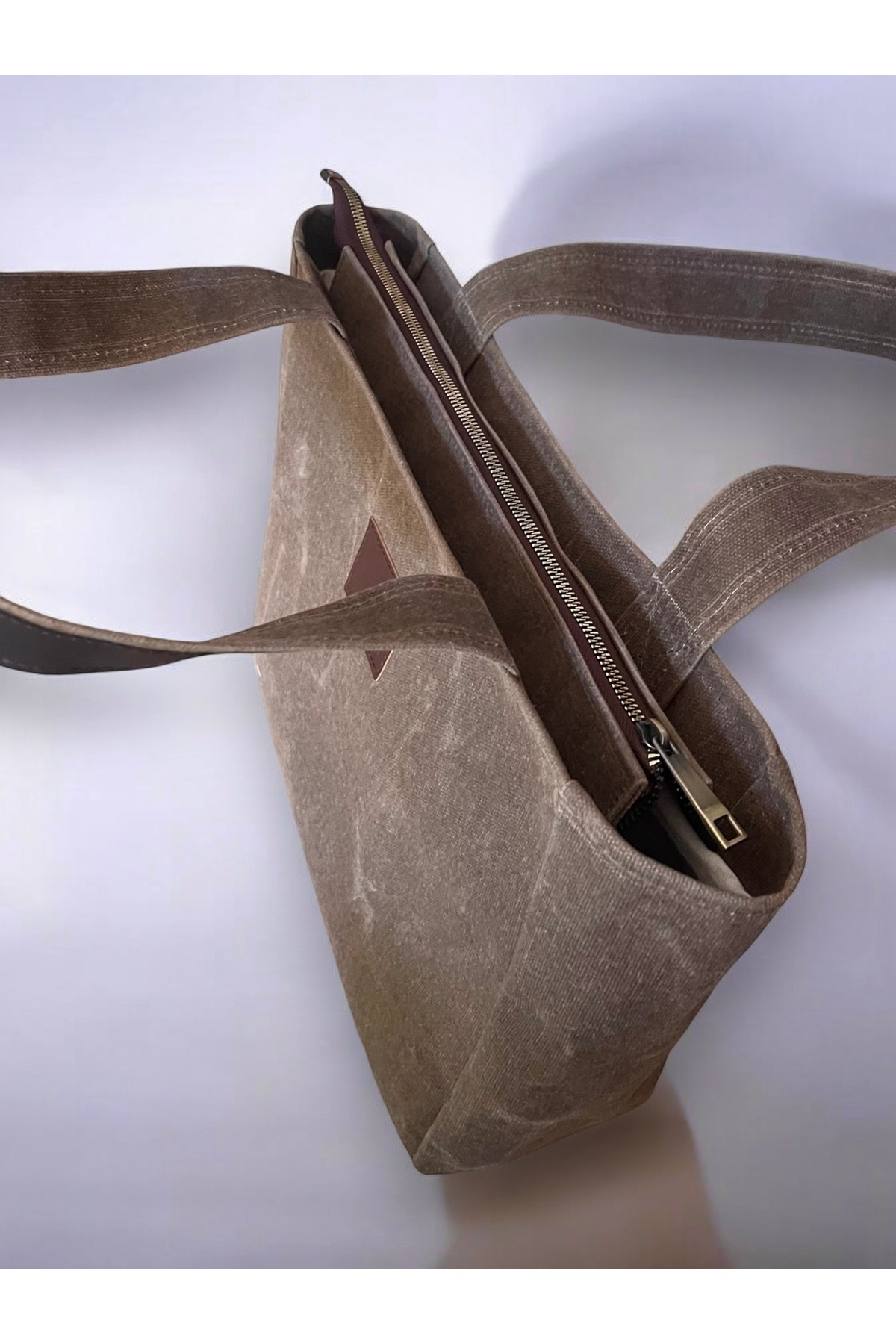 Fermuarlı Orta Boy Mumlu Kanvas Kahverengi Omuz Çantası Fermuarlı Orta Boy Mumlu Kanvas Kahverengi Omuz Çantası NGTFOMK Standart