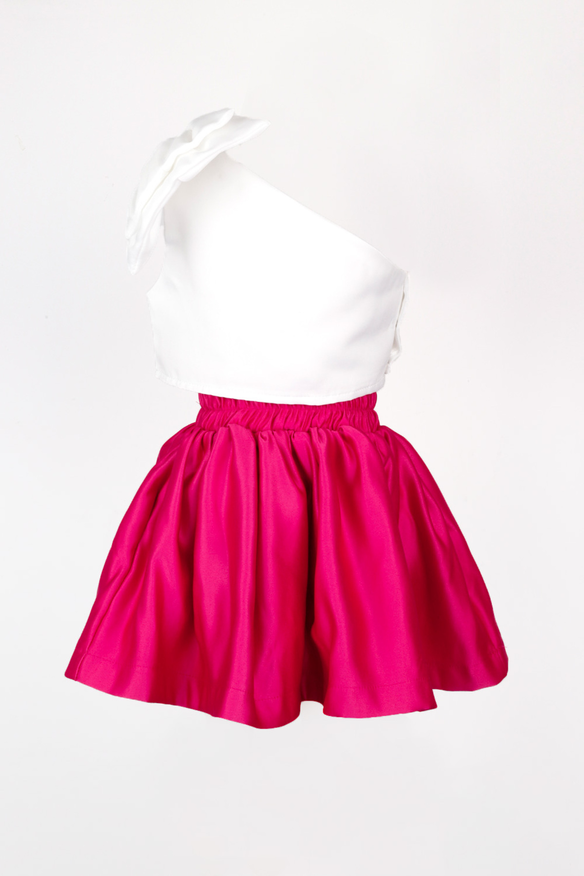 Fuşya Tek Omuzlu Fiyonk Detaylı Etek Crop Kız Çocuk İkili Takım - Luisa Fuşya Tek Omuzlu Fiyonk Detaylı Etek Crop Kız Çocuk İkili Takım - Luisa LM1582 7 Yaş