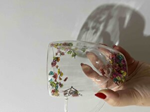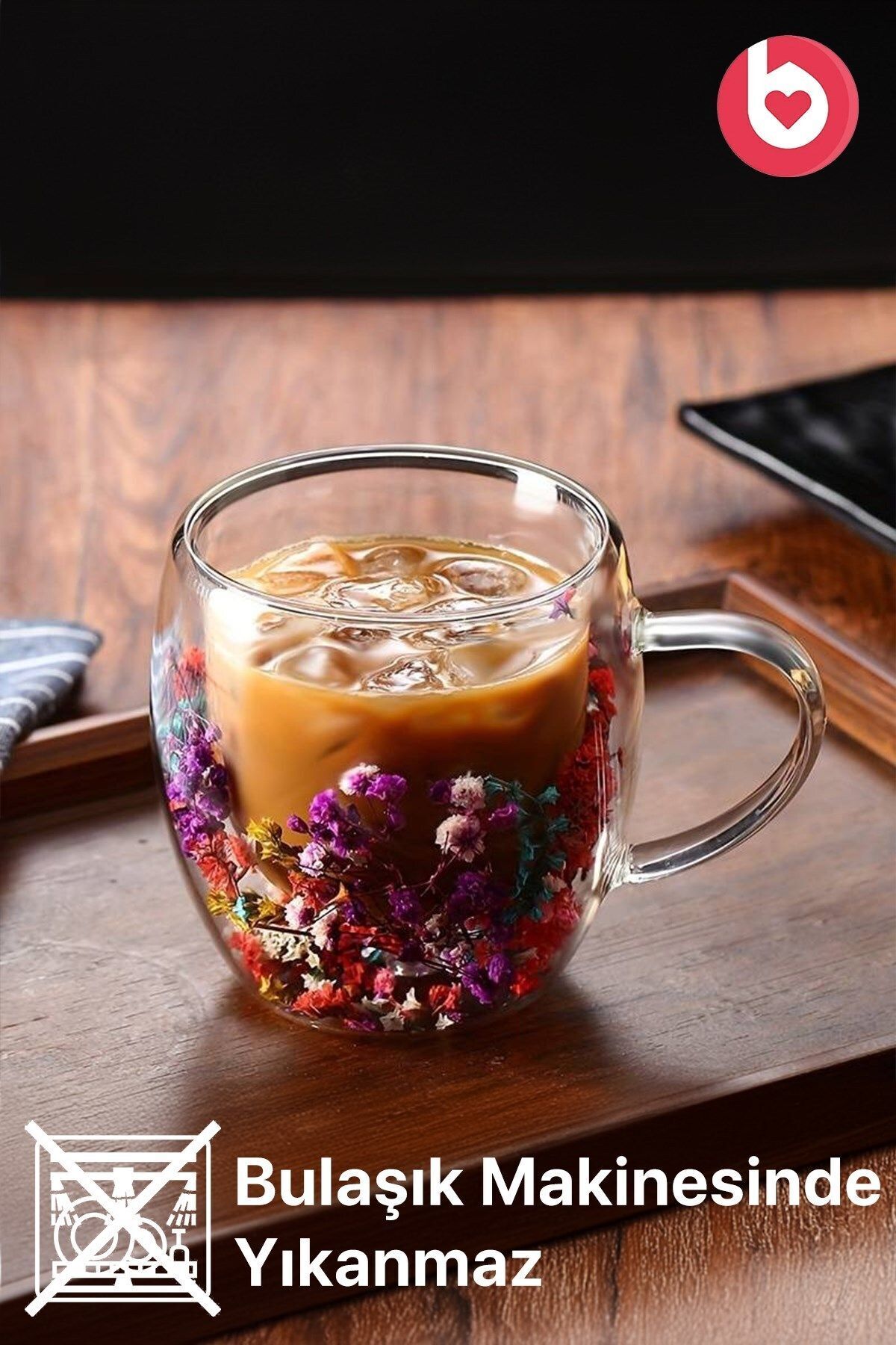 Kurutulmuş Çiçekli Çift Cidarlı Borosilikat Cam Bardak Kupa Kurutulmuş Çiçekli Çift Cidarlı Borosilikat Cam Bardak Kupa KÇBCB01 تک سایز