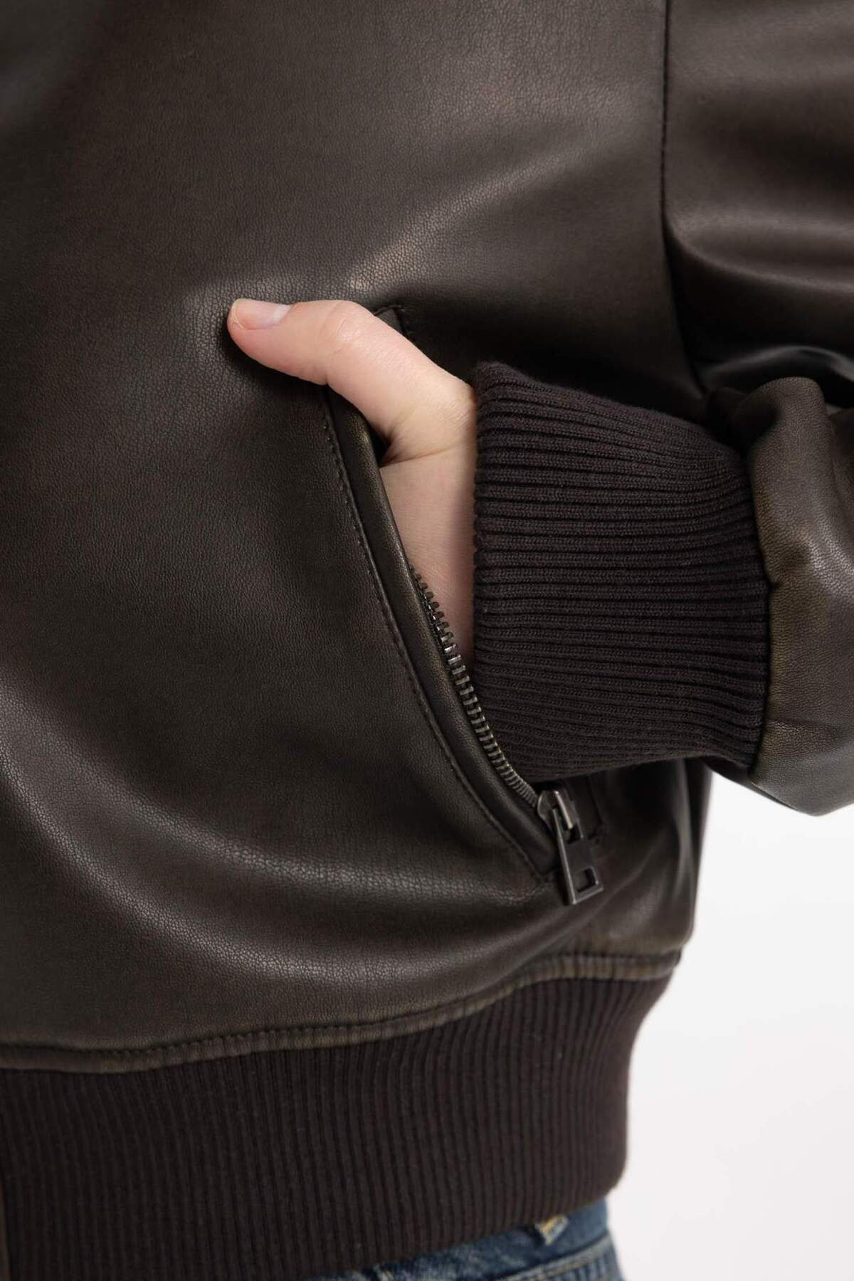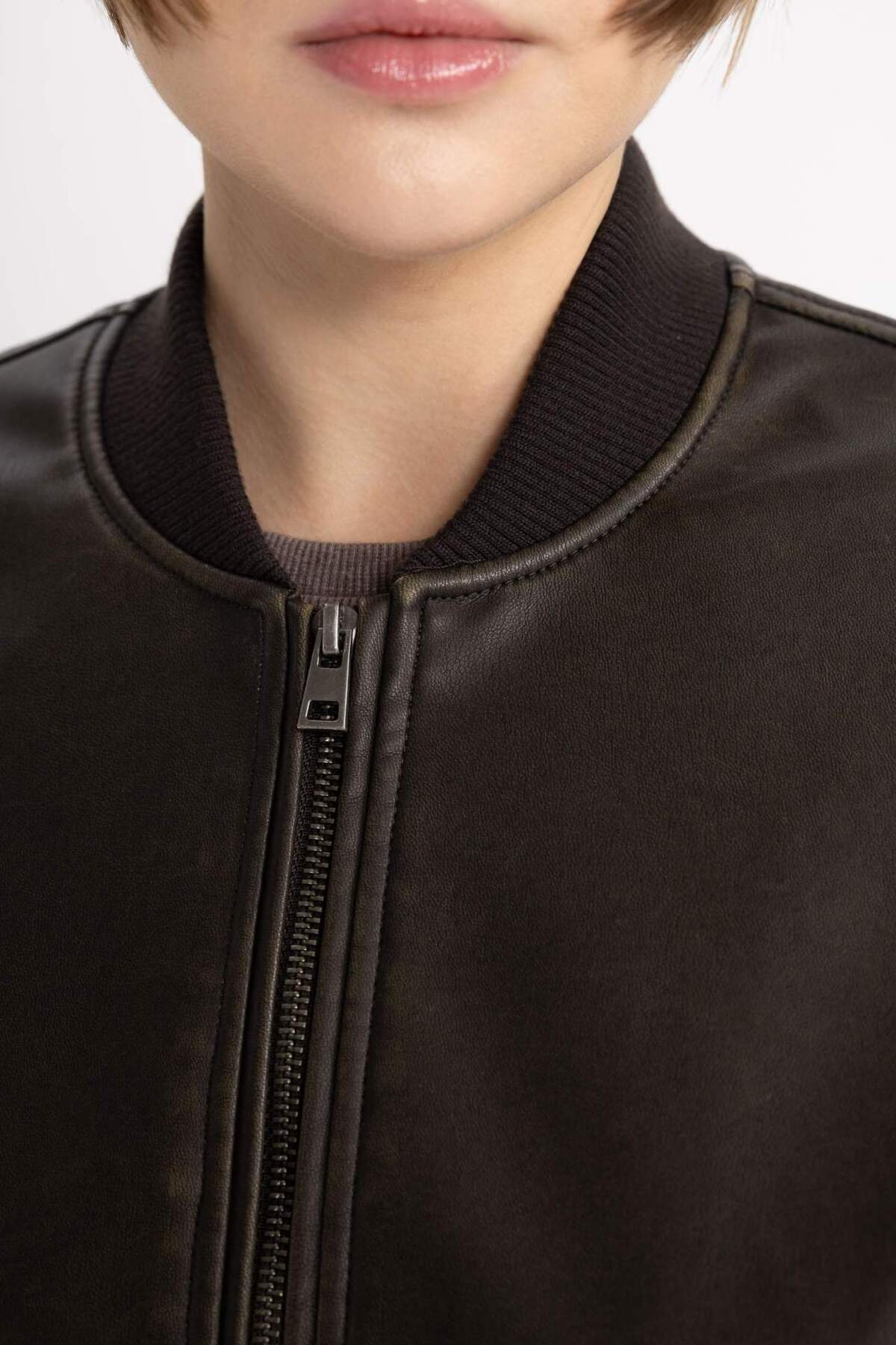 Kolej Yaka Çıtçıtlı Cepli Eskitme Suni Deri Bomber Ceket B8247AX24SP Kolej Yaka Çıtçıtlı Cepli Eskitme Suni Deri Bomber Ceket B8247AX24SP 2XL