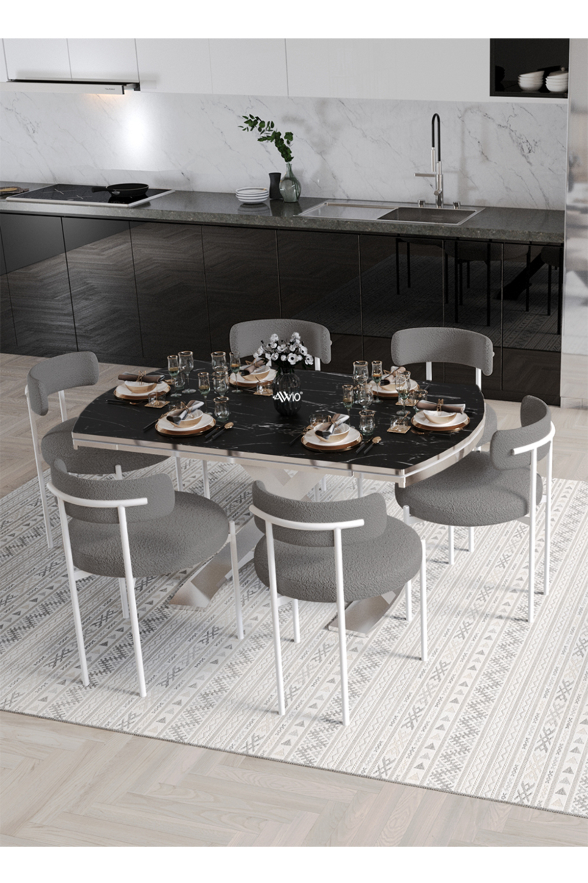 Wella Lak Panel 80x130 Açılır Yemek Masası Mutfak Masası 6 Kişilik Masa Sandalye Takımı Wella Lak Panel 80x130 Açılır Yemek Masası Mutfak Masası 6 Kişilik Masa Sandalye Takımı AVVİO00501S تک سایز