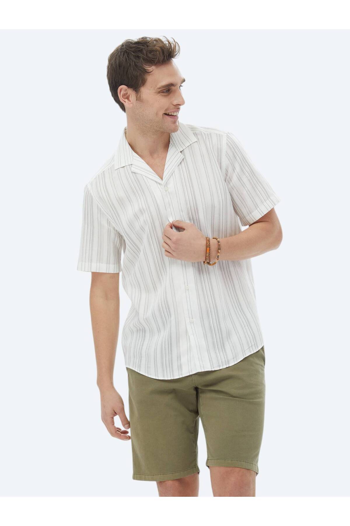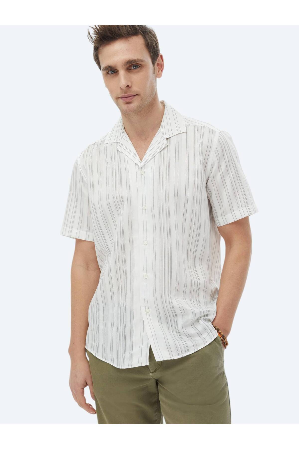 Ekru Çizgili Regular Fit Dokuma Klasik Gömlek Ekru Çizgili Regular Fit Dokuma Klasik Gömlek 10150064-520 46