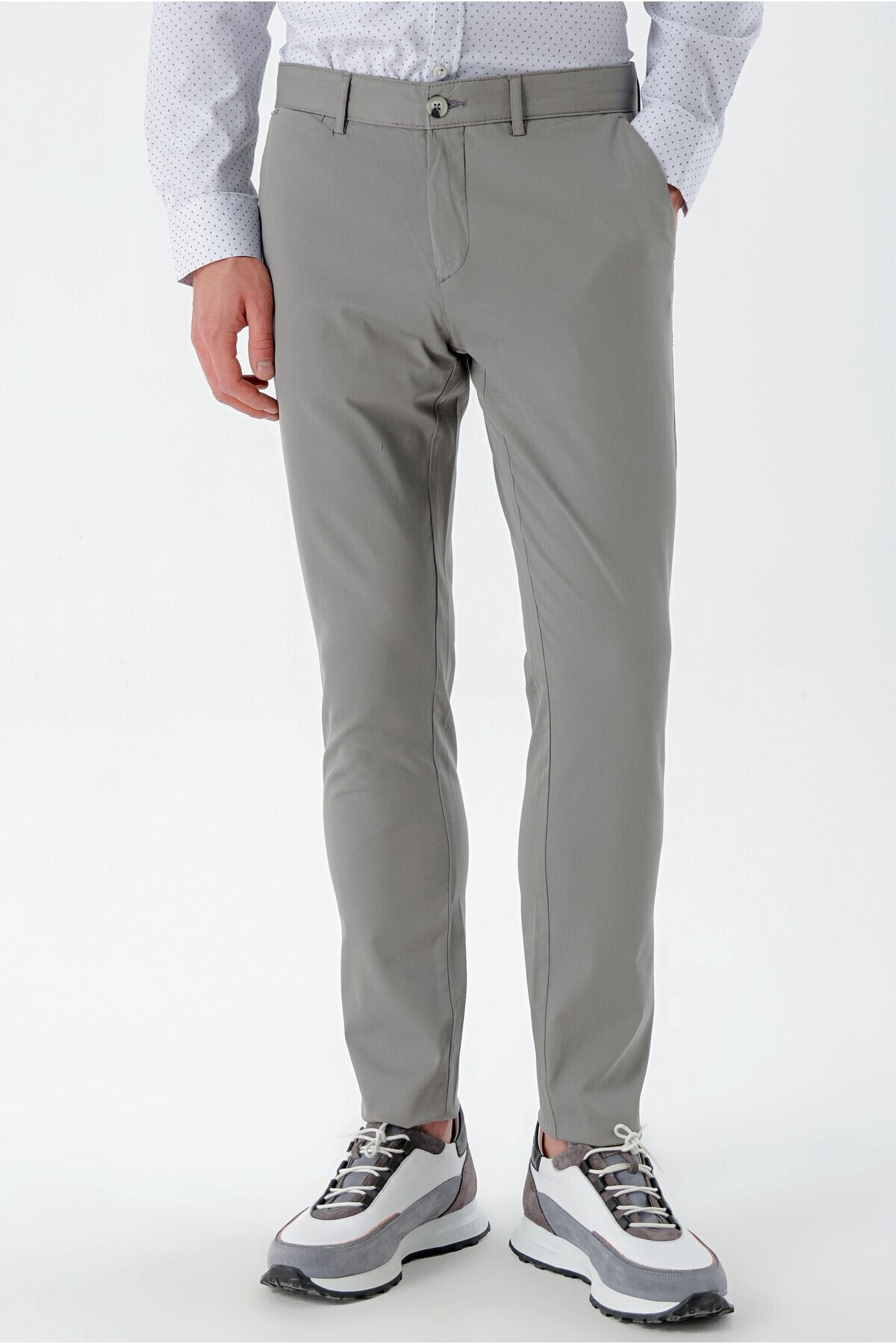 Erkek Gri Piefti Pamuk Yan Cep Slim Fit Chino Pantolon Erkek Gri Piefti Pamuk Yan Cep Slim Fit Chino Pantolon 23YS003019 50
