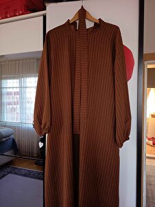 Hakim Yaka Beli Kuşaklı Tesettür Elbise Tsd240313 Kahverengi Hakim Yaka Beli Kuşaklı Tesettür Elbise Tsd240313 Kahverengi TSD240313 52