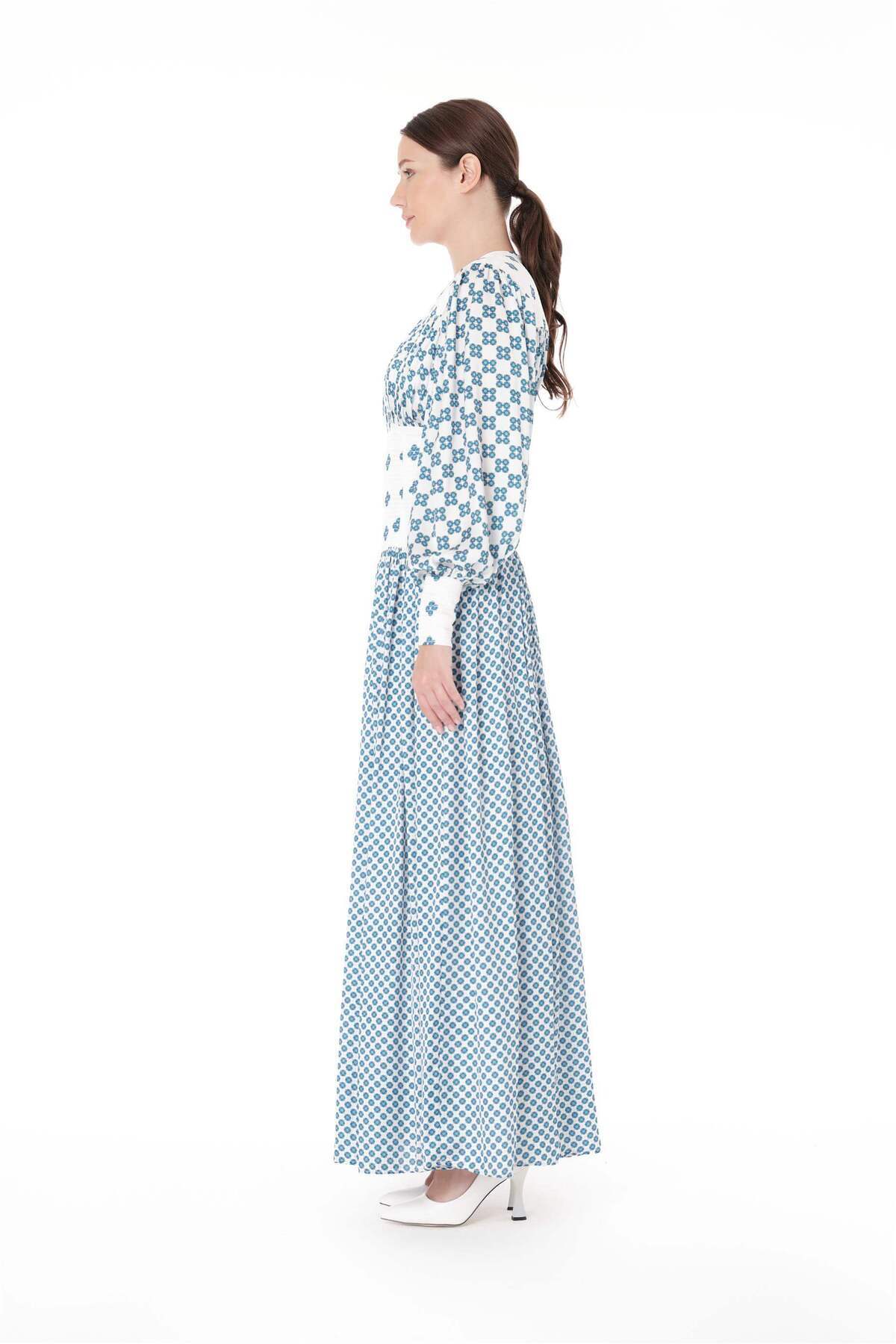 NAKIŞ DETAYLI DİJİTAL BASKI UZUN ELBİSE Mavi NAKIŞ DETAYLI DİJİTAL BASKI UZUN ELBİSE Mavi MH06.248 XL