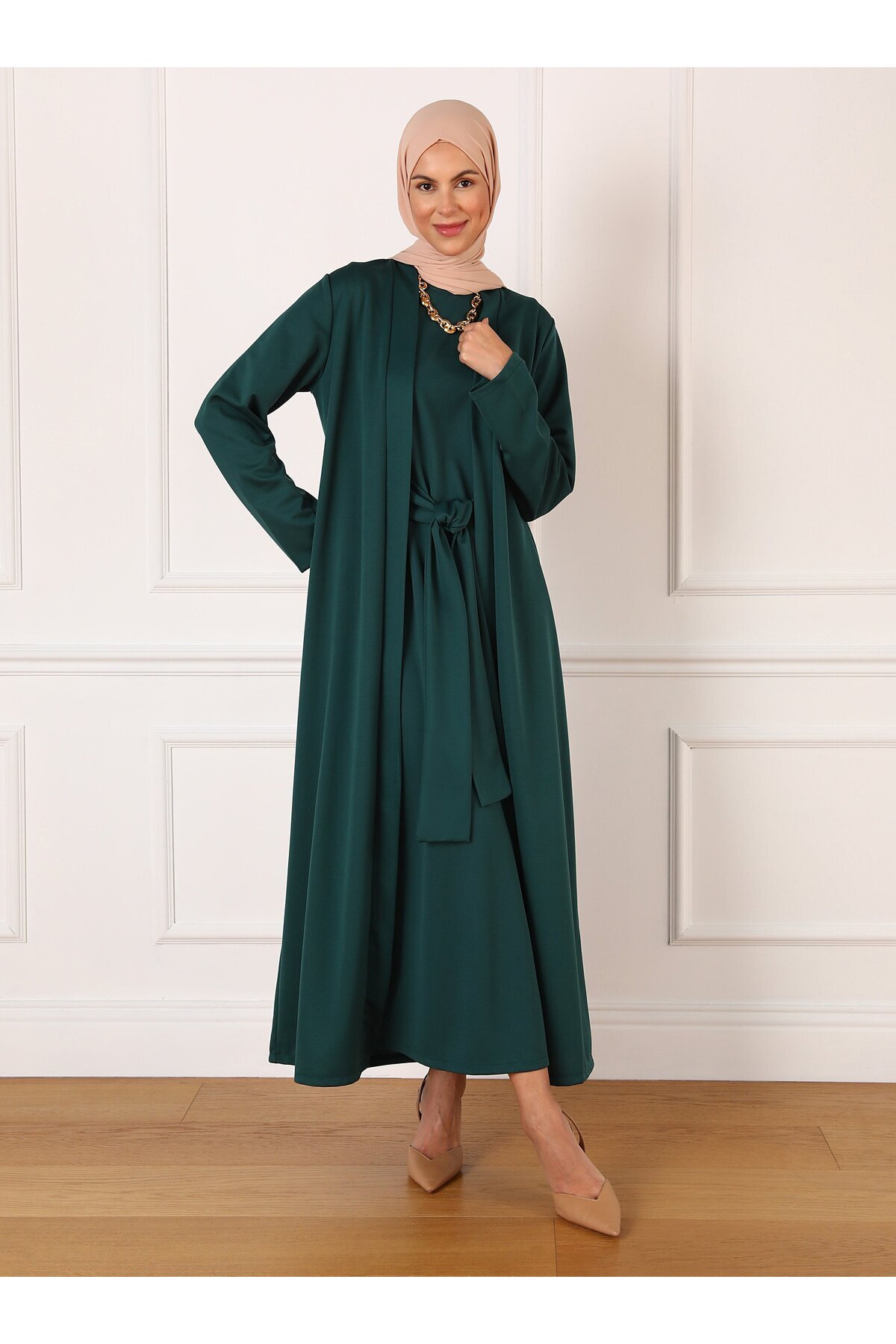Kuşak Detaylı Elbise & Ferace İkili Takım - Zümrüt Yeşili - Refka Kuşak Detaylı Elbise & Ferace İkili Takım - Zümrüt Yeşili - Refka 8736034 42