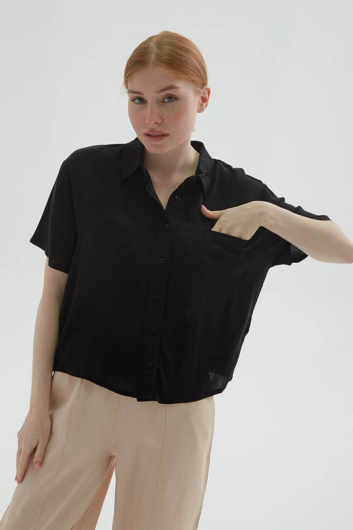 Crop Siyah Kadın Gömlek 25Y0515K1 Crop Siyah Kadın Gömlek 25Y0515K1 24Y0515K1 XL