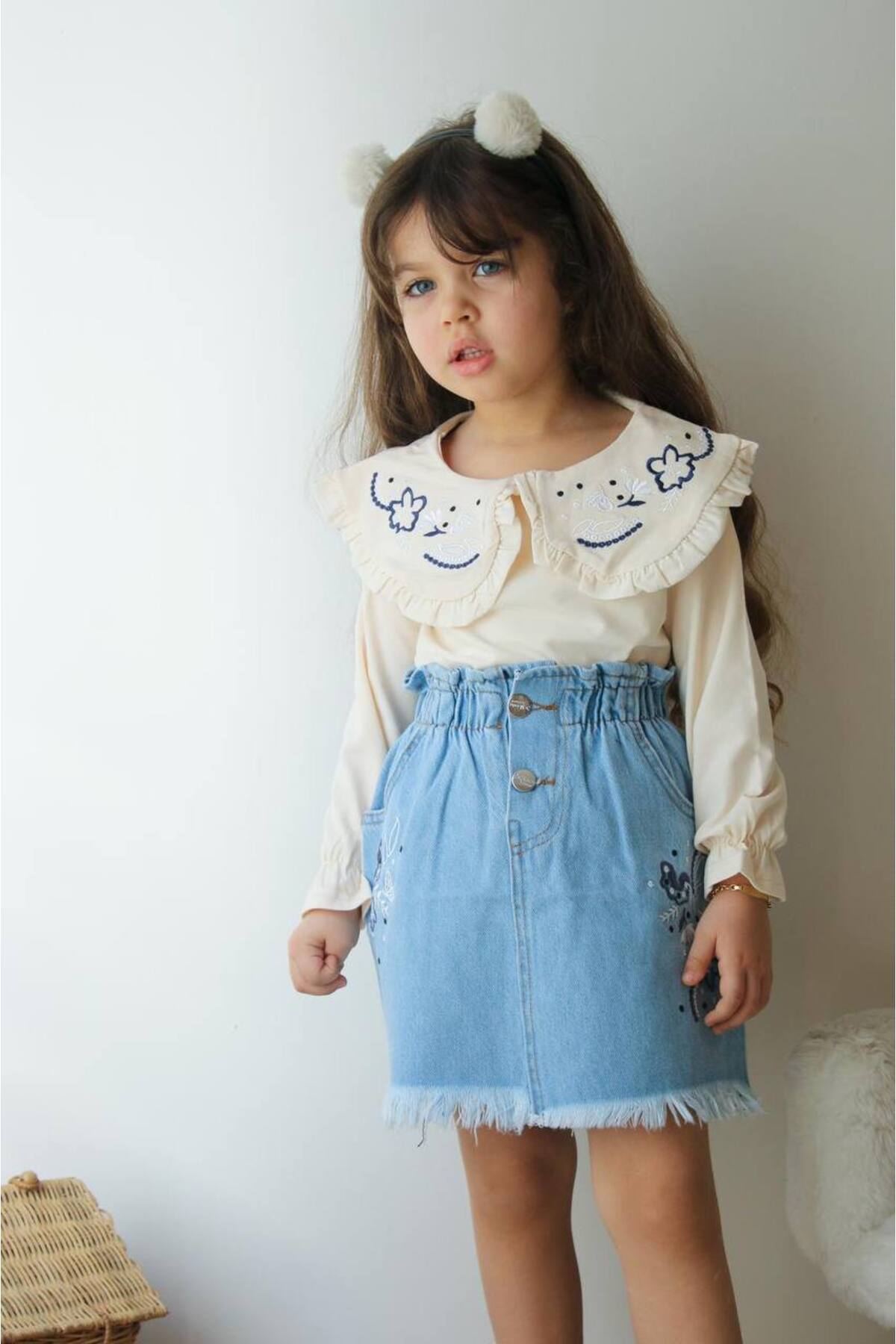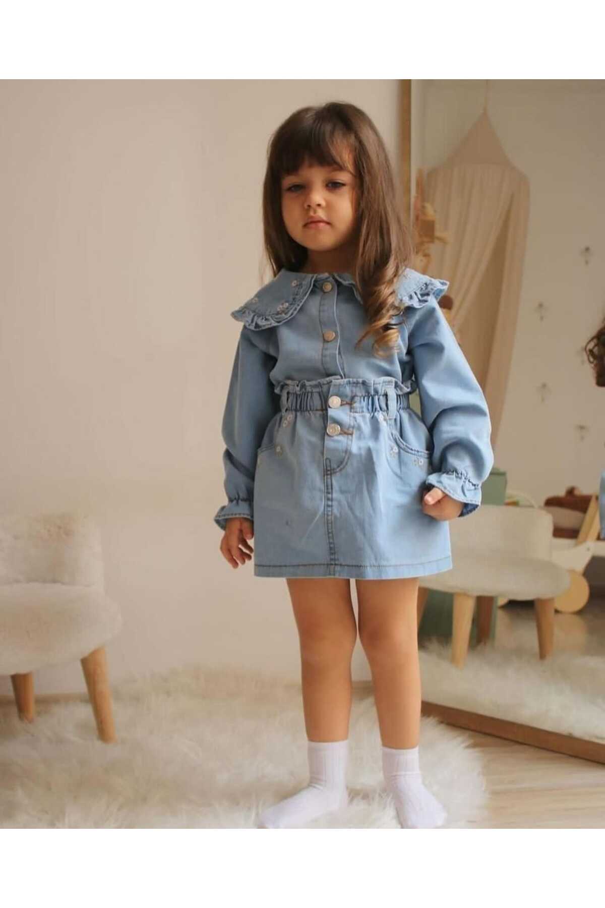 Açık Kahve Çiçek Dokuma Detaylı Kot Etek Premium Takım Açık Kahve Çiçek Dokuma Detaylı Kot Etek Premium Takım TRNDYL-2400090 7-8 Yaş