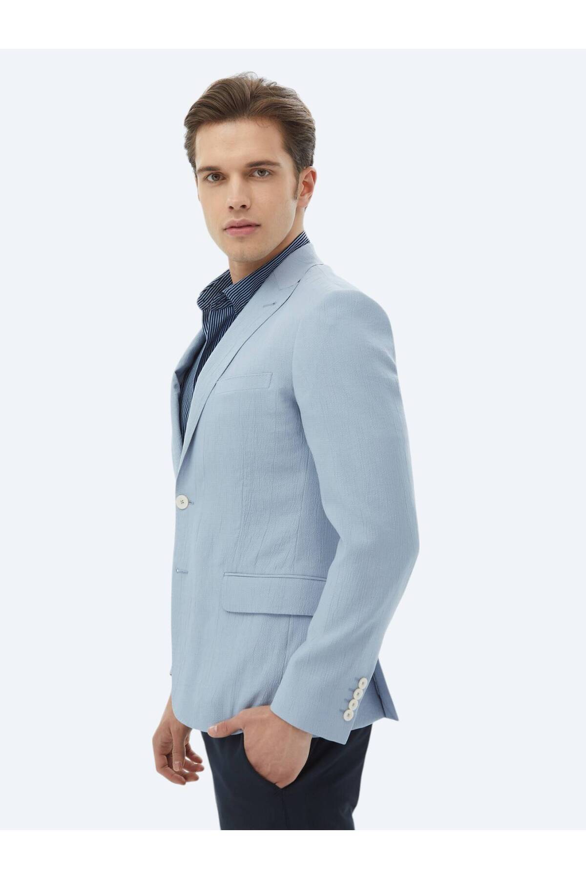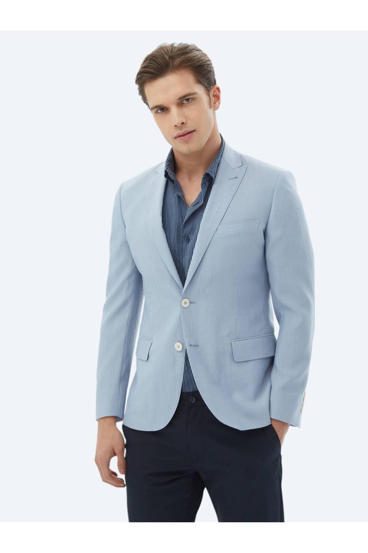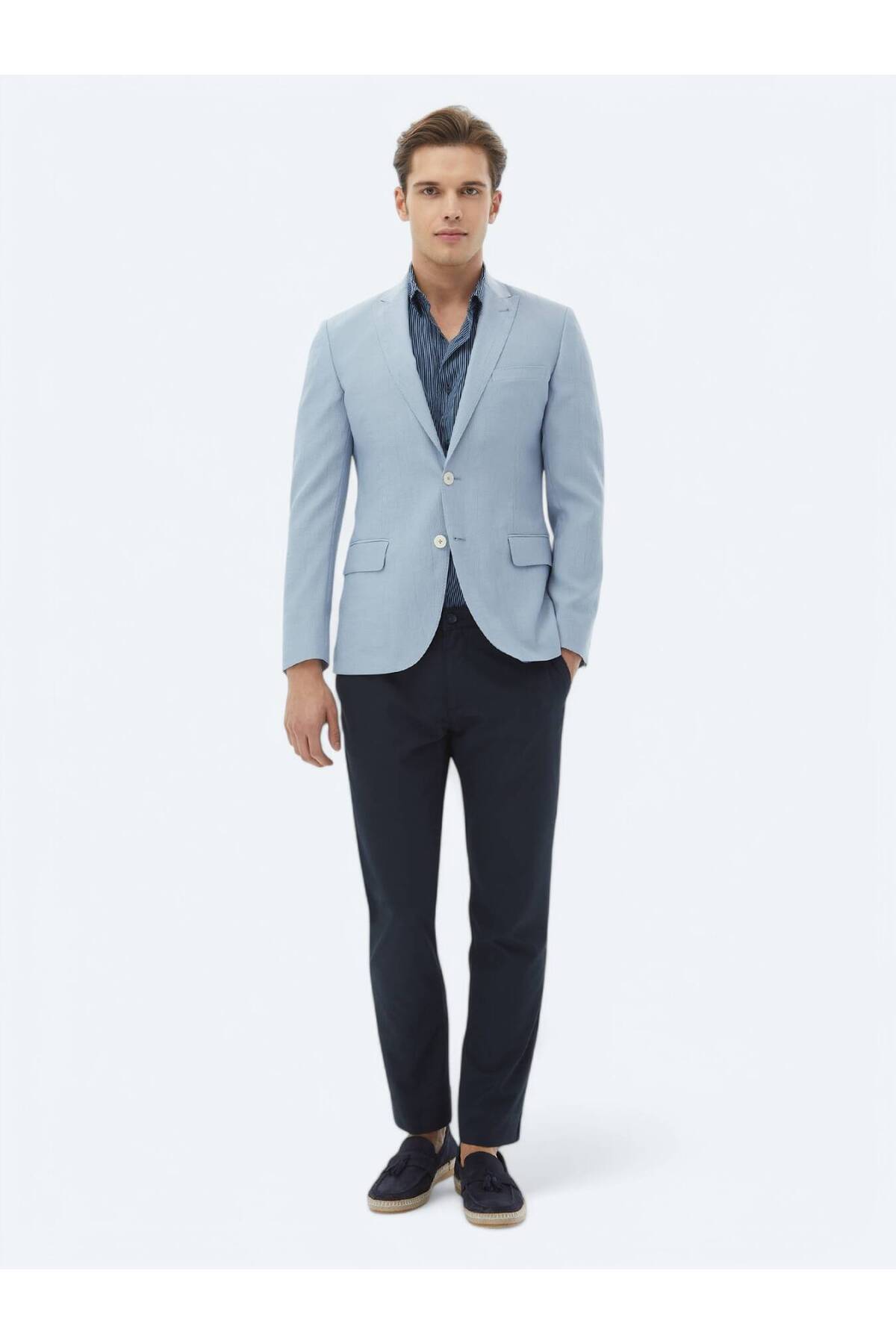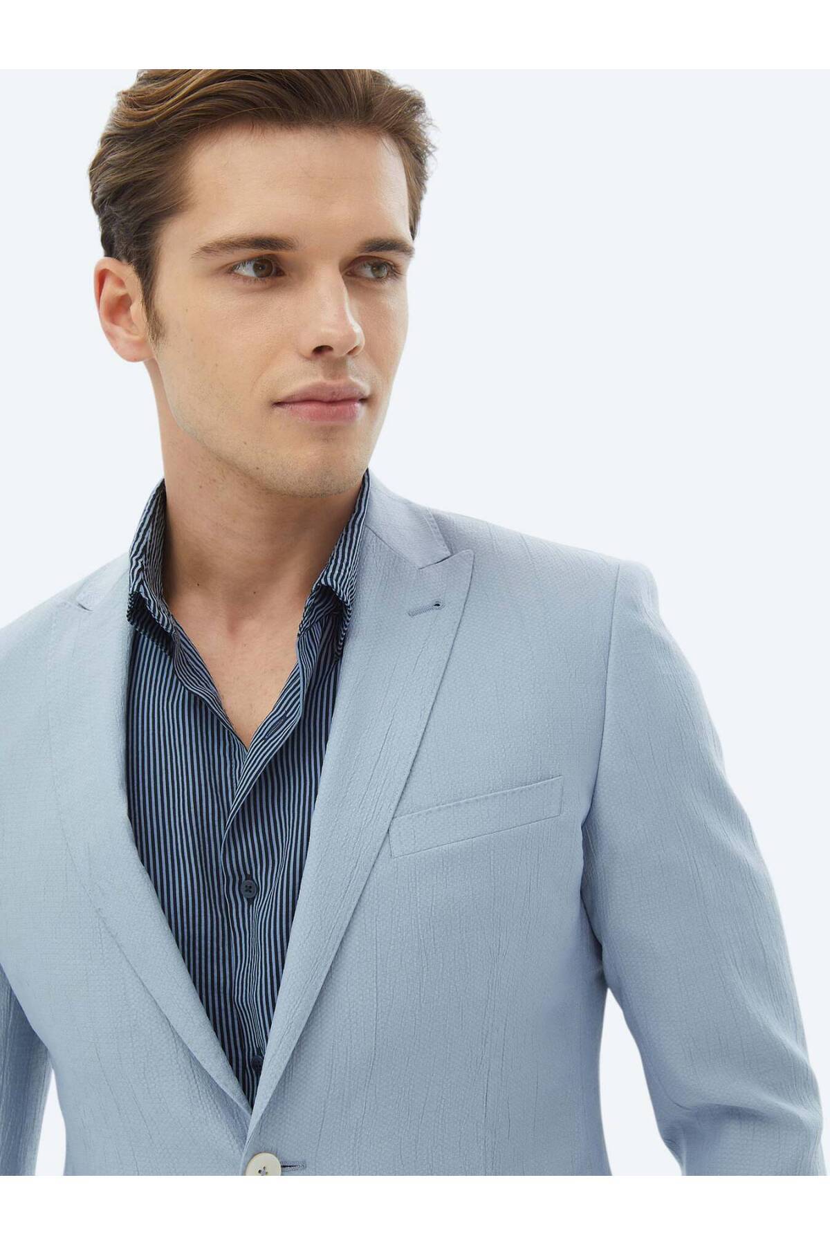 Açık Mavi Düz Slim Fit Ceket Açık Mavi Düz Slim Fit Ceket 10147453-320 58
