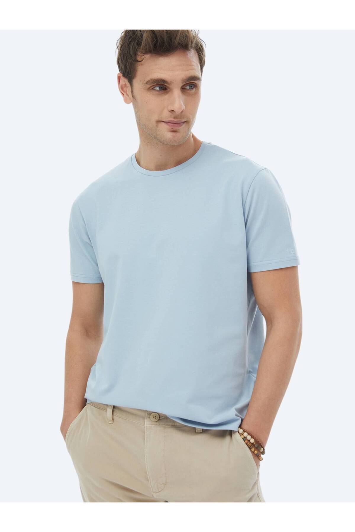 Mavi Düz Bisiklet Yaka Pamuk Karışımlı T-Shirt Mavi Düz Bisiklet Yaka Pamuk Karışımlı T-Shirt 10150314-300 3XL