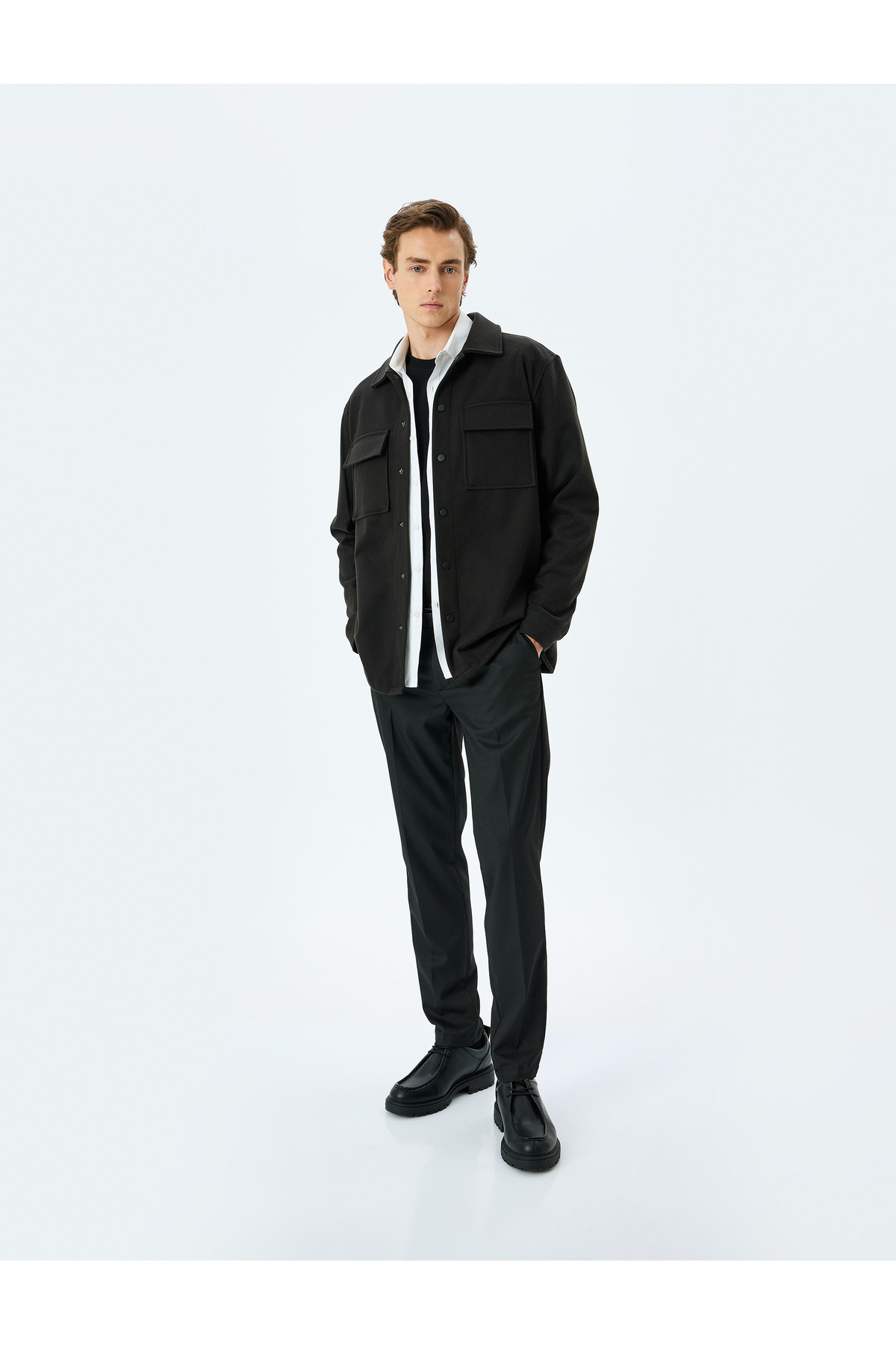 Gömlek Ceket Cep Detaylı Çıtçıt Düğmeli Klasik Yaka Gömlek Ceket Cep Detaylı Çıtçıt Düğmeli Klasik Yaka 4SAM50030HW 54
