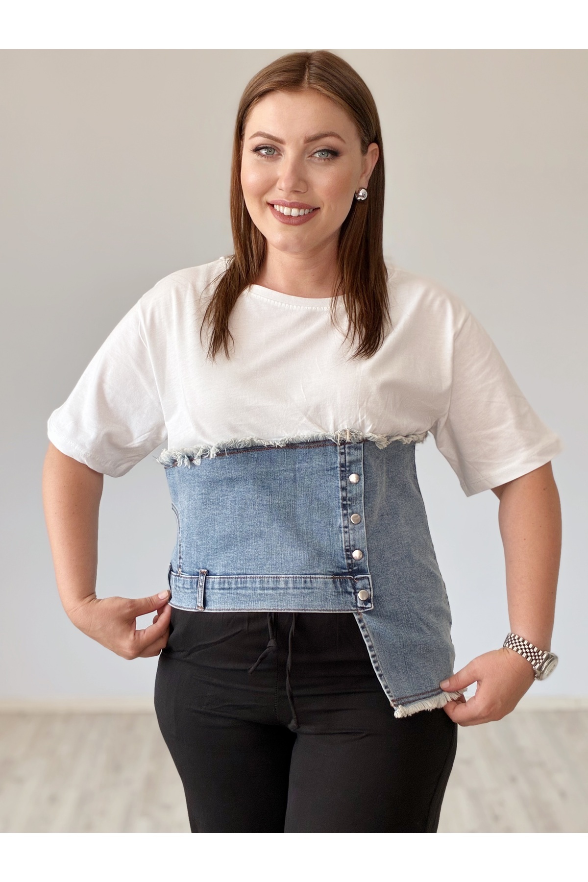 Yummi Jean Tshirt / Kot Detaylı Tshirt Yummi Jean Tshirt / Kot Detaylı Tshirt 78659845 L