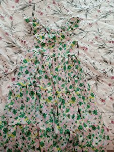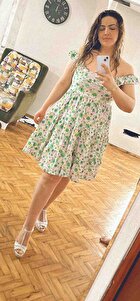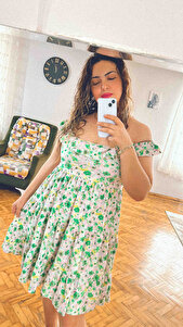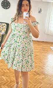 Çiçekli Madonna Yaka Omzu Açık Elbise Midi Boy Katlı Rahat Kalıp Bürümcük Çiçekli Madonna Yaka Omzu Açık Elbise Midi Boy Katlı Rahat Kalıp Bürümcük 4SAL80089IK 3XL
