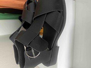 Kadın Hakiki Deri Geniş Kalıp Konforlu Günlük Şık Sandalet Floter Siyah Kadın Hakiki Deri Geniş Kalıp Konforlu Günlük Şık Sandalet Floter Siyah ERL-2306997 40