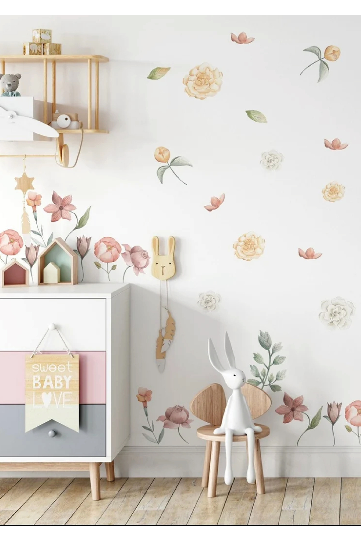 Bohem Pembe Büyük Çiçekler Çocuk Odası Duvar Stickerı Bohem Pembe Büyük Çiçekler Çocuk Odası Duvar Stickerı WHS704 100 x 160