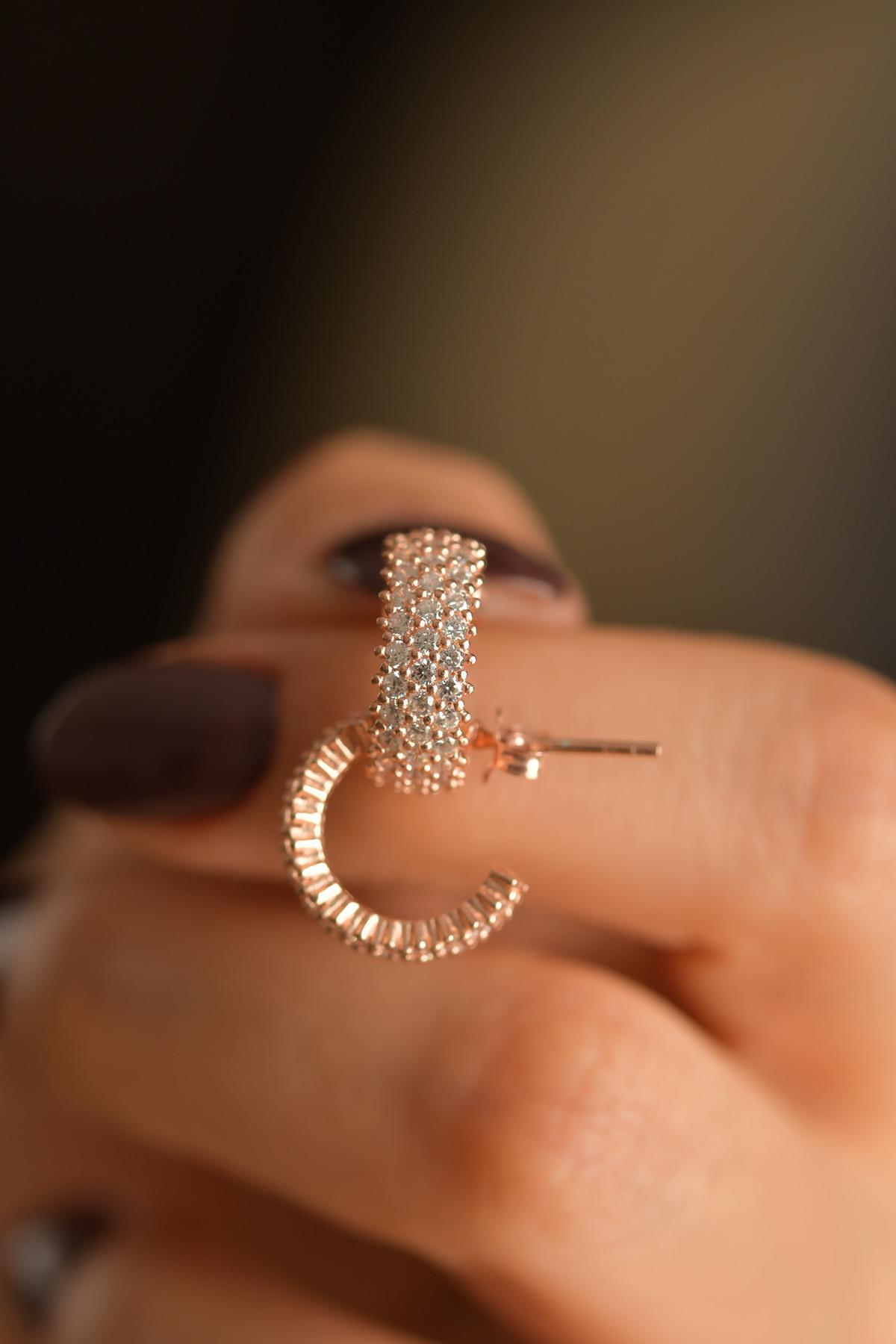 Zirkon Taşlı Rodyum Beş Sıra Tamtur Halka Model Çivili Gümüş Küpe Zirkon Taşlı Rodyum Beş Sıra Tamtur Halka Model Çivili Gümüş Küpe EE10055V تک سایز