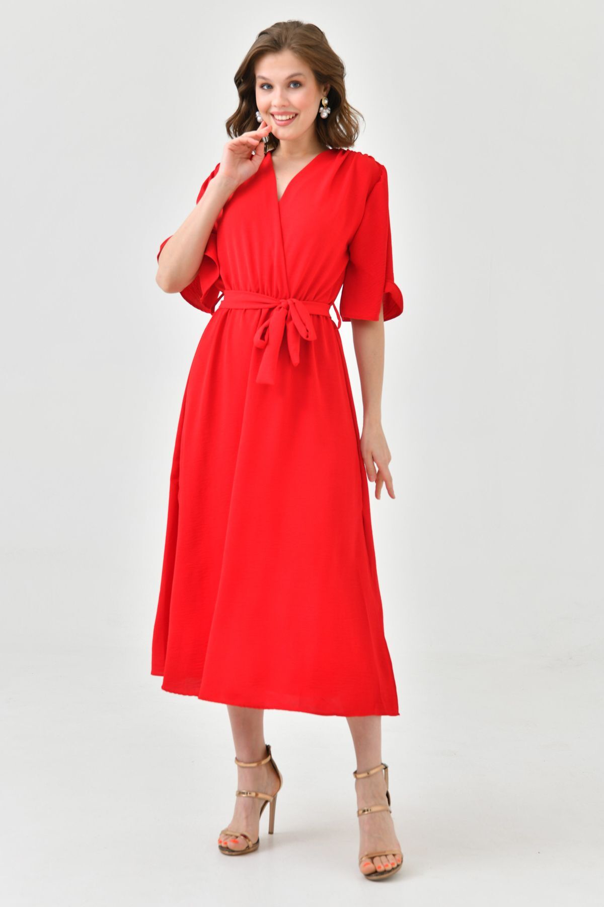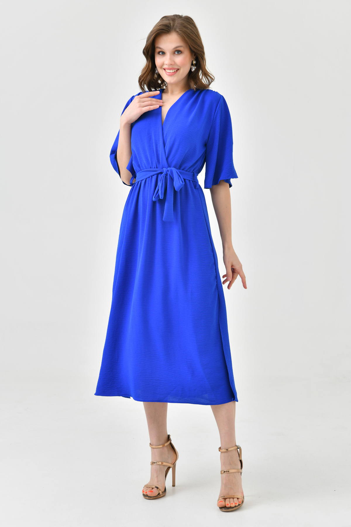 Haki Aerobin Kumaş Beli Lastikli Kuşak Detaylı Yarasa Kol 130 cm Midi Kruvaze Yaka Elbise 097 Haki Aerobin Kumaş Beli Lastikli Kuşak Detaylı Yarasa Kol 130 cm Midi Kruvaze Yaka Elbise 097 SMT-DKS-097S 40