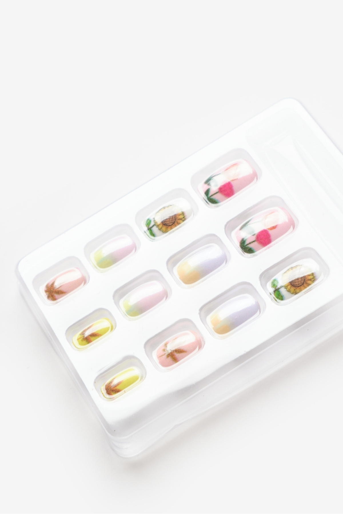 Çok Renkli Yaprak Desenli Kız Çocuk Takma Tırnak Çok Renkli Yaprak Desenli Kız Çocuk Takma Tırnak LM1615 تک سایز
