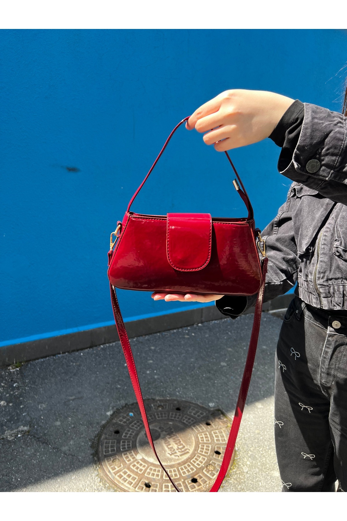 Kadın Rugan Deri Baget Cherry Bag Fermuar Kapamalı Cherry Bag Askı Detaylı Kol Çantası Kadın Rugan Deri Baget Cherry Bag Fermuar Kapamalı Cherry Bag Askı Detaylı Kol Çantası kara4 تک سایز