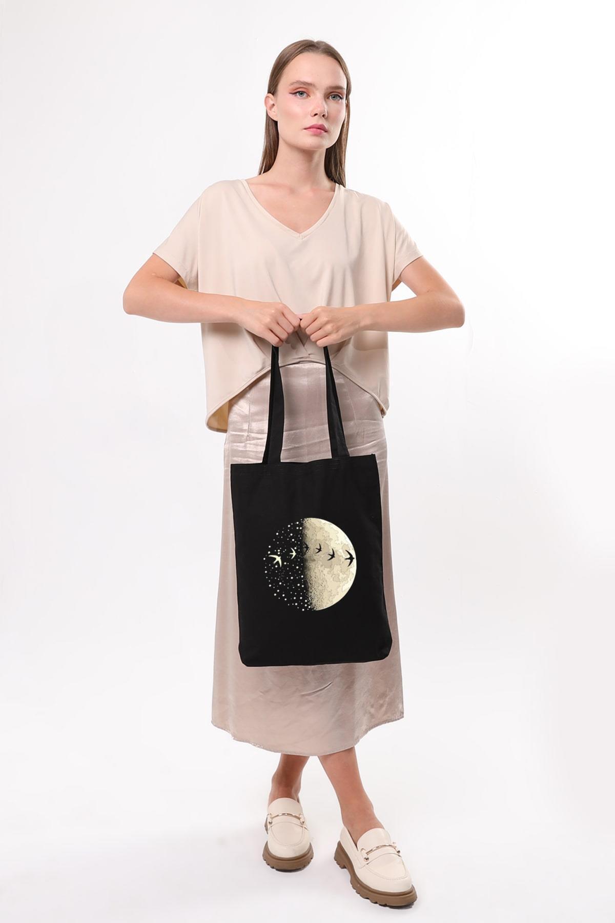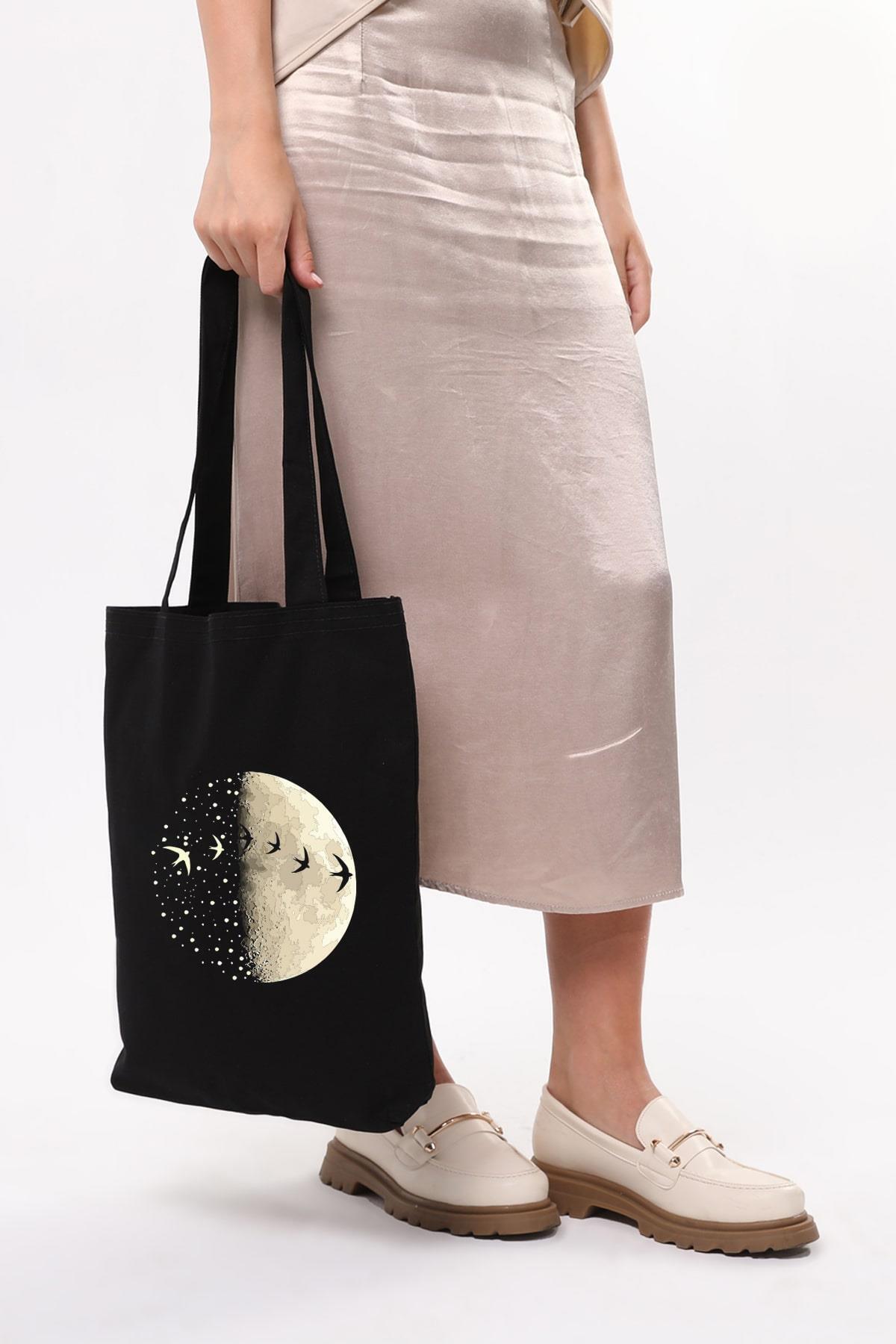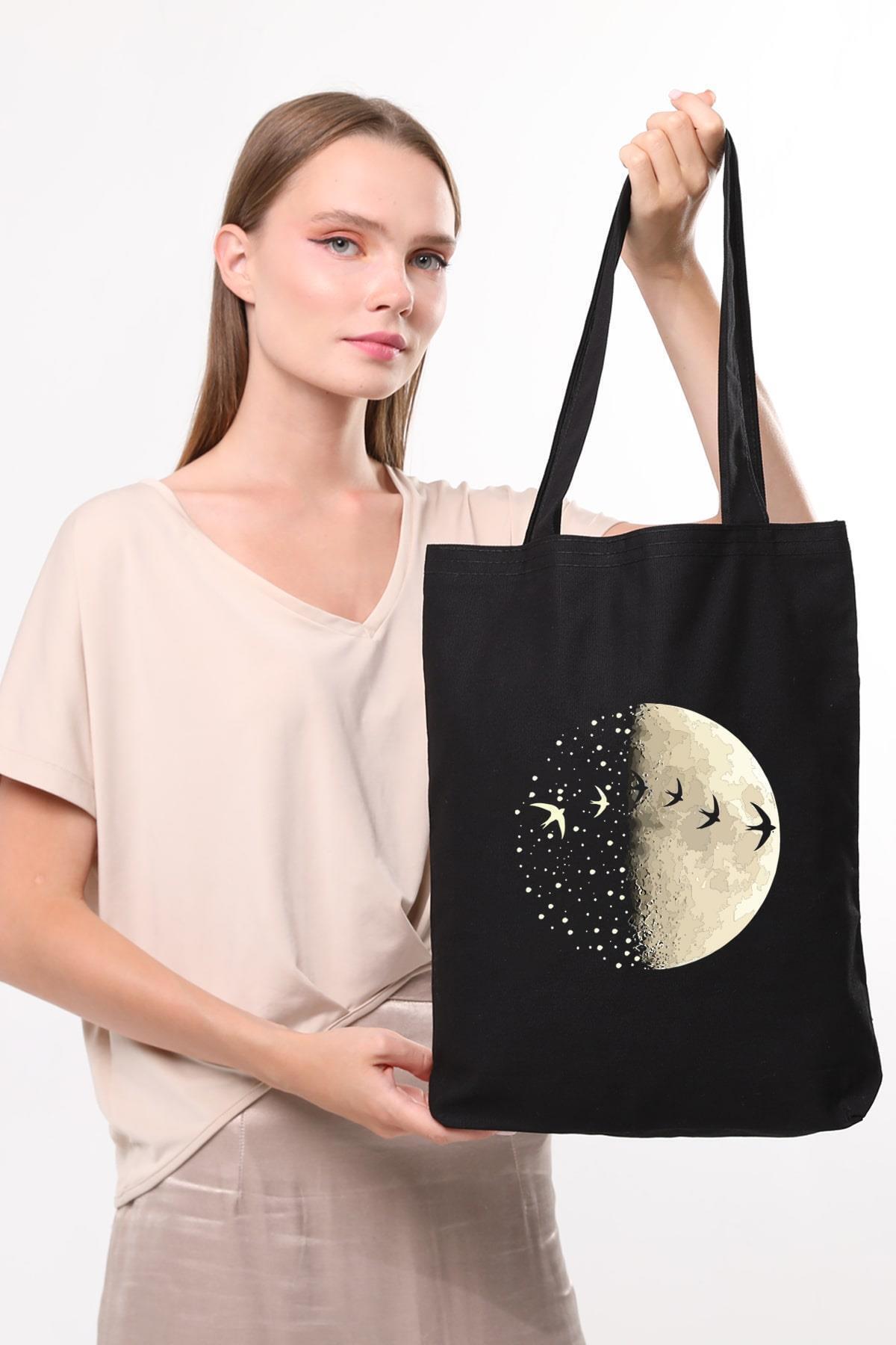 Siyah Kanvas Yarımay Ve Kuşlar Baskılı Çanta Siyah Kanvas Yarımay Ve Kuşlar Baskılı Çanta 2190 Standart