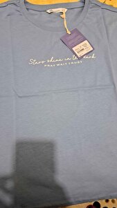 Shine Bisiklet Yaka Baskılı Regular Fit Tişört-Gök Mavisi Shine Bisiklet Yaka Baskılı Regular Fit Tişört-Gök Mavisi 2Y24200887 XL