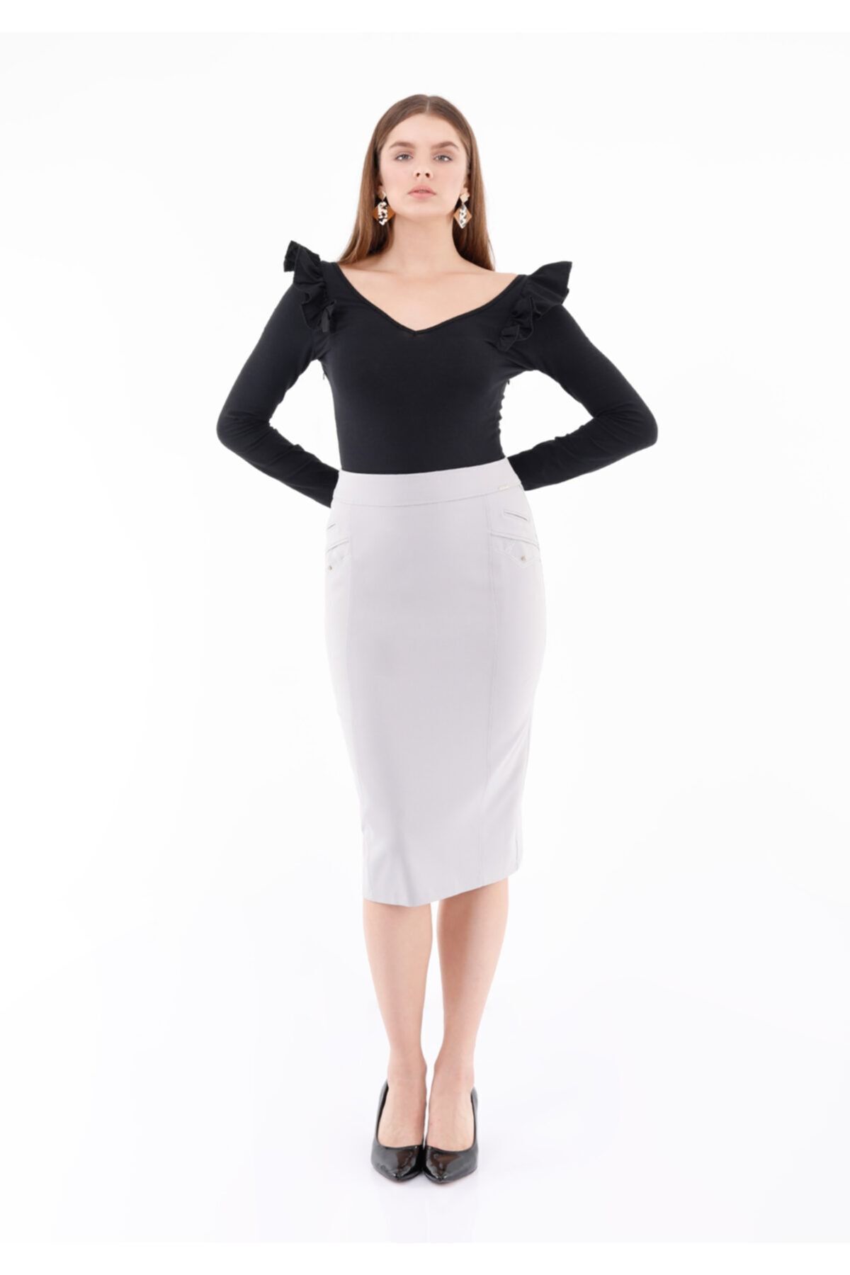 Antrasit Midi Boy Klasik Beli Lastikli Arkadan Yırtmaçlı Fermuarlı Kalem Etek Antrasit Midi Boy Klasik Beli Lastikli Arkadan Yırtmaçlı Fermuarlı Kalem Etek 200031 42