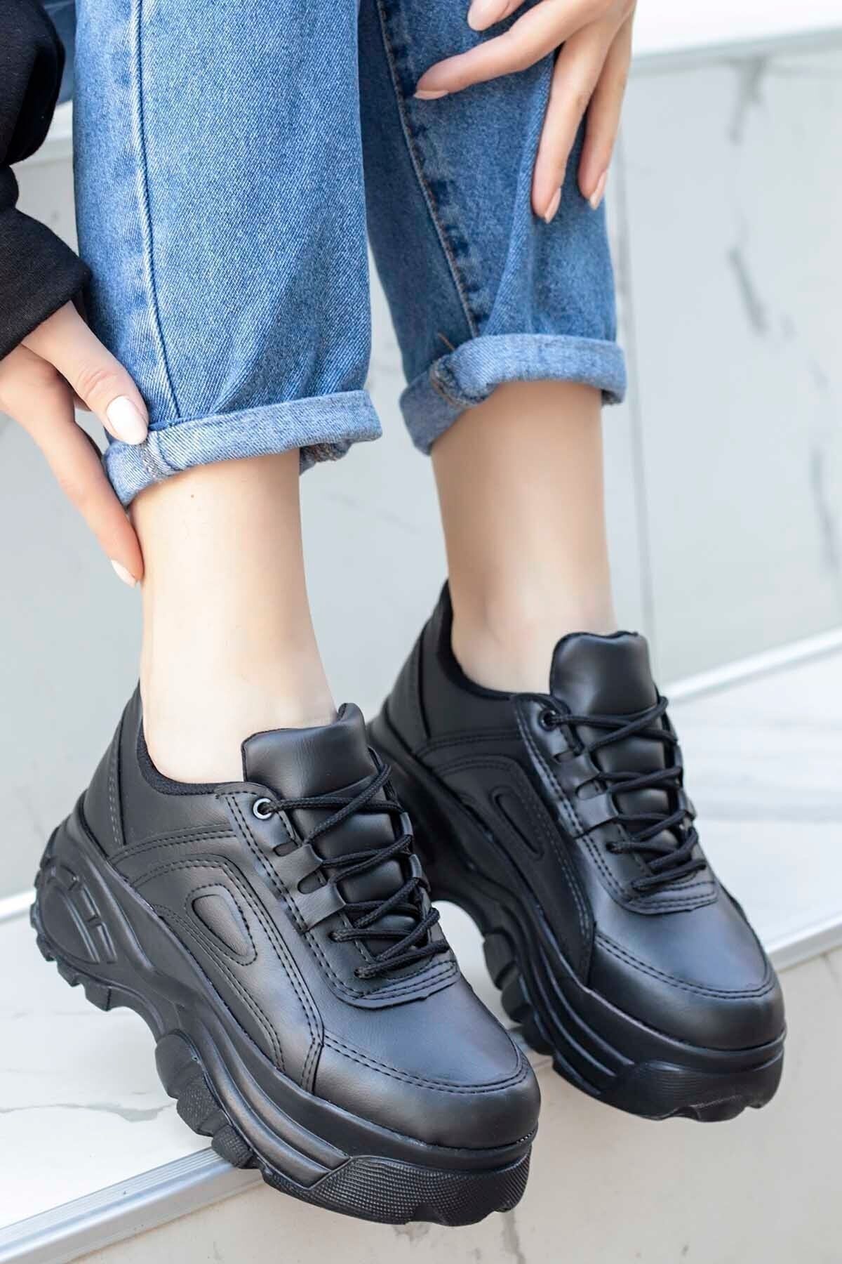 Günlük Kadın Siyah Beyaz Sneaker Bağcıklı Yüksek Tabanlı Yürüyüş Nefes Alan Spor Ayakkabı 451 Günlük Kadın Siyah Beyaz Sneaker Bağcıklı Yüksek Tabanlı Yürüyüş Nefes Alan Spor Ayakkabı 451 PRA-379586-695299 40