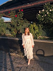 Bej Volanlı Şeritli Kat Kat Elbise Bej Volanlı Şeritli Kat Kat Elbise 8009 L