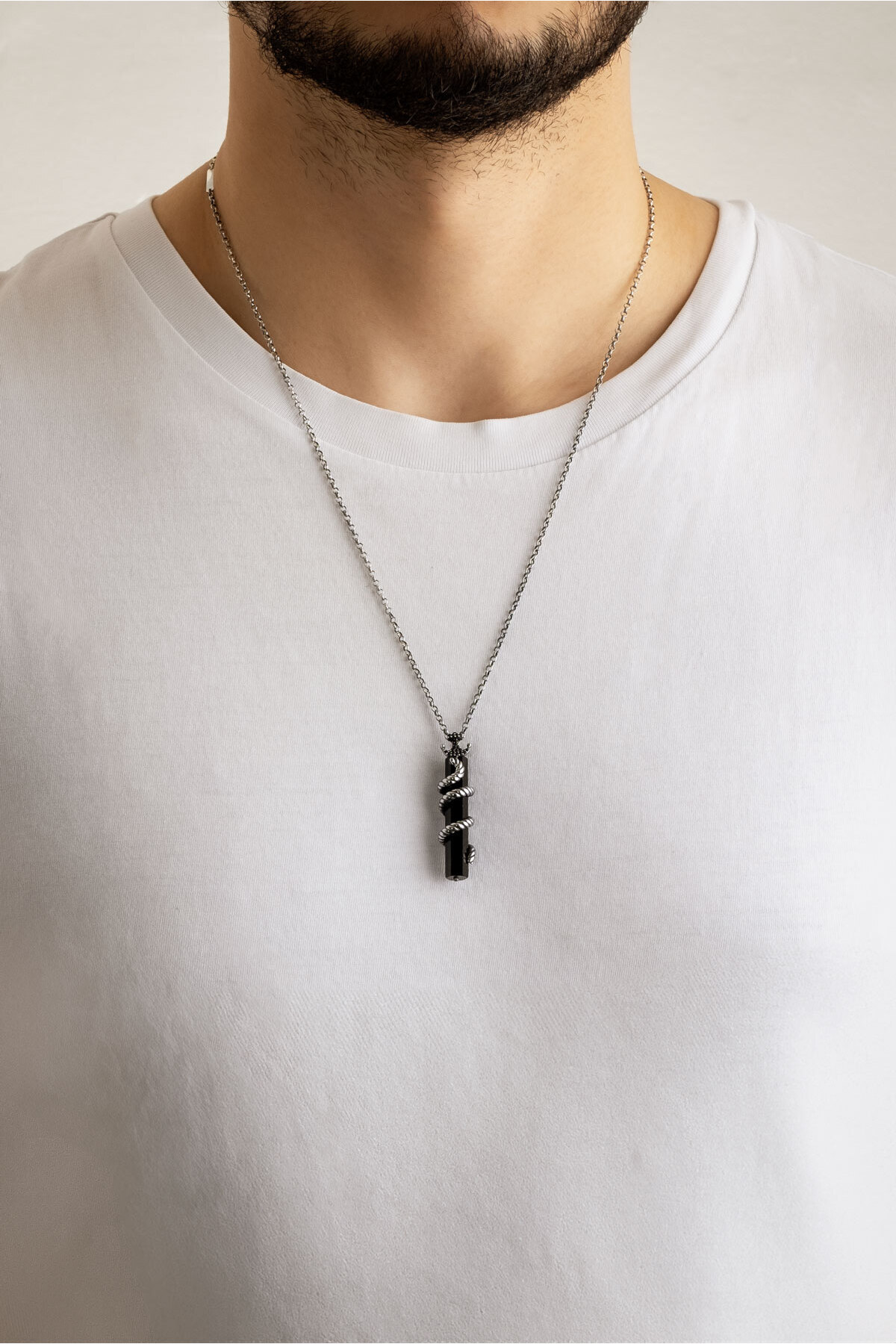 Oniks Taşlı 65 Cm Gümüş Erkek Kolye Oniks Taşlı 65 Cm Gümüş Erkek Kolye 1123720299 65 cm
