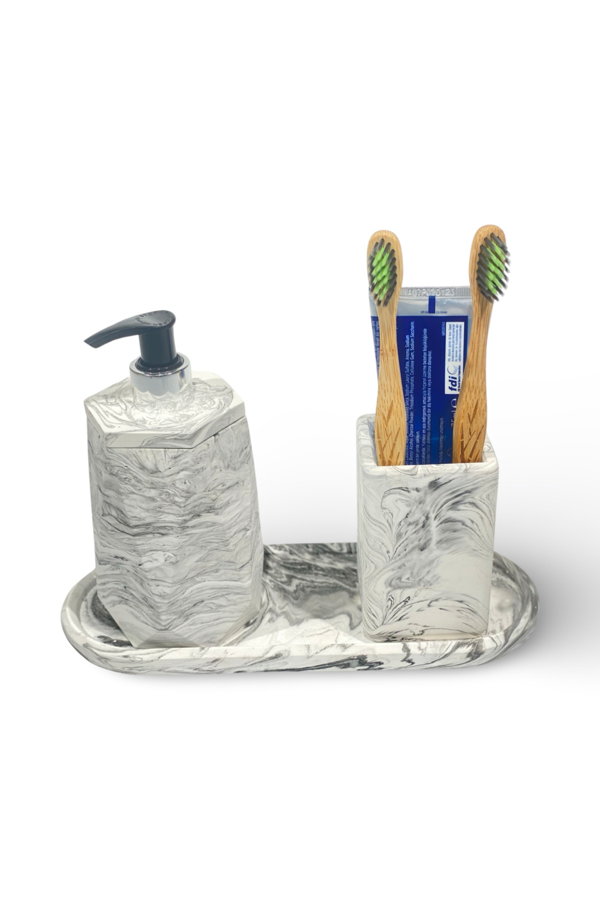 Modern Tasarımlı Mermer Temalı Beton Banyo Aksesuar Seti (3 Parça) Modern Tasarımlı Mermer Temalı Beton Banyo Aksesuar Seti (3 Parça) 3lübasit تک سایز