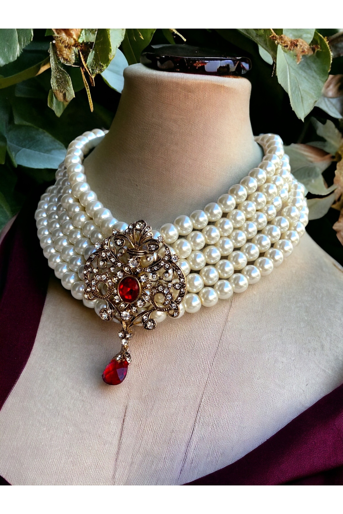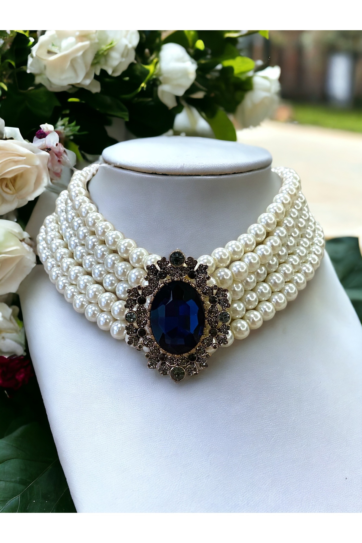 Baget ve Su Damlası Taşlı İnci Choker Kolye Baget ve Su Damlası Taşlı İnci Choker Kolye FAYRA-A499NCL تک سایز